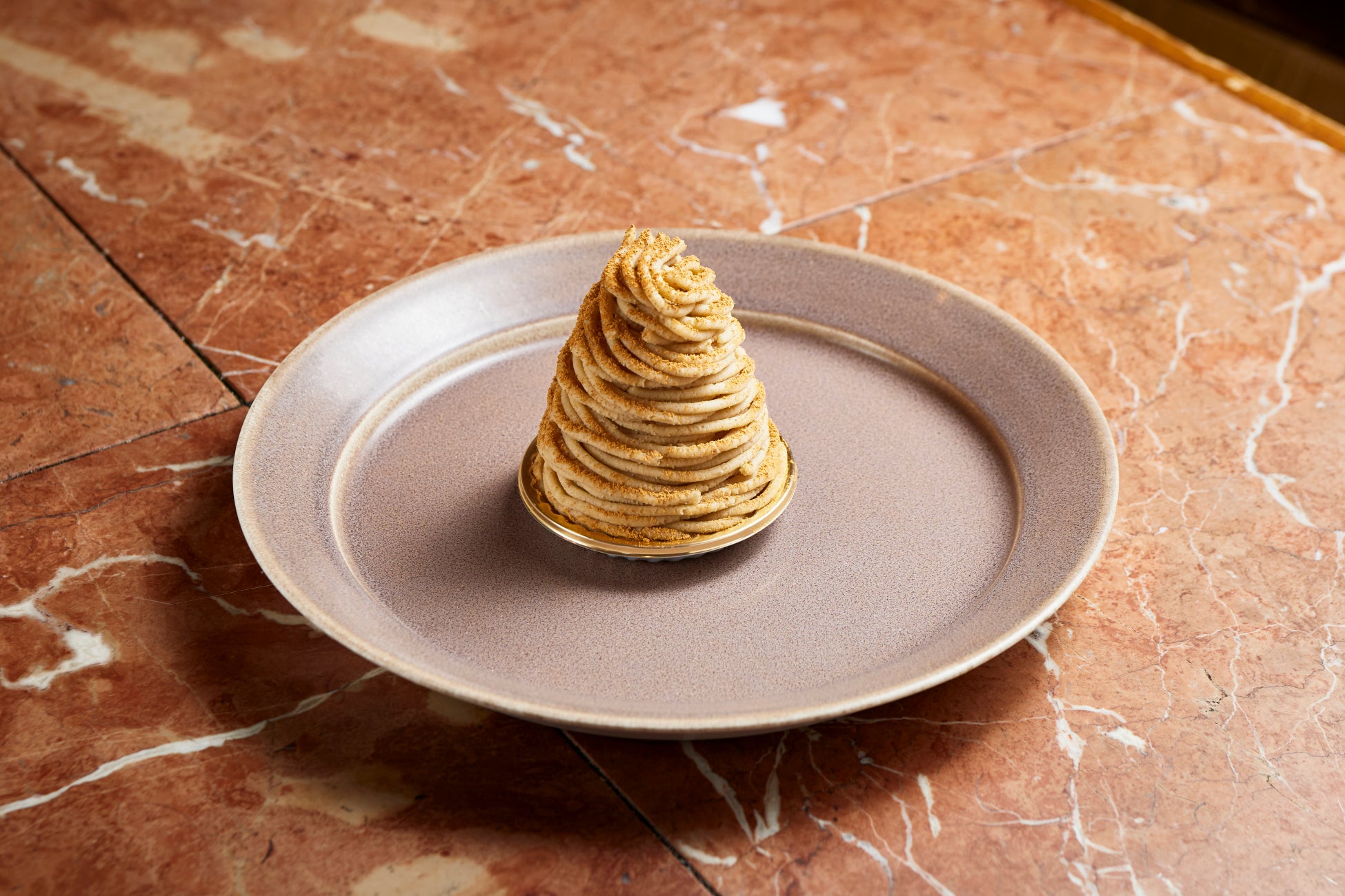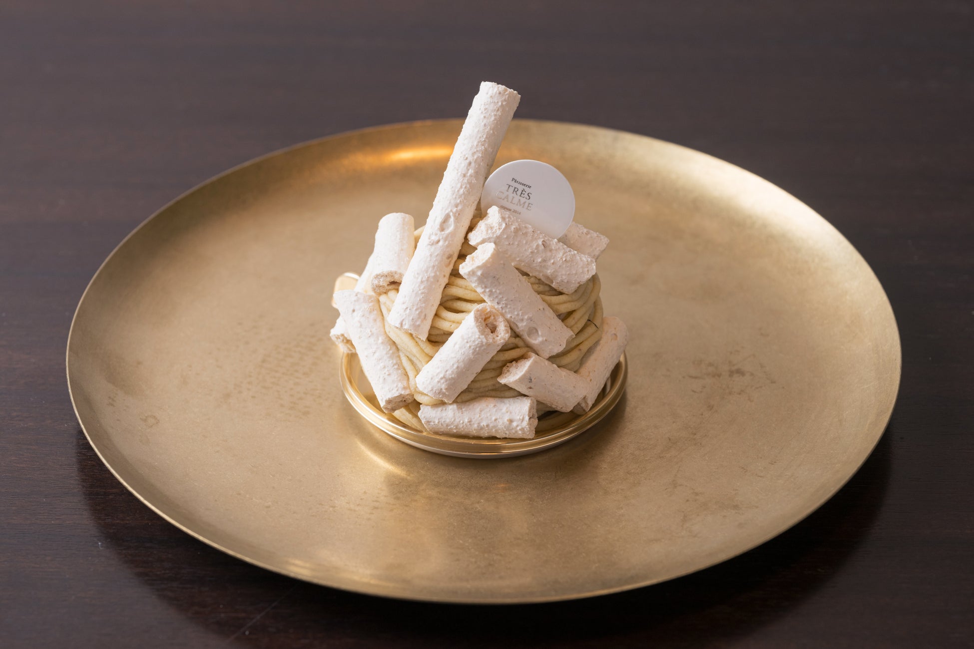 香ばしいヘーゼルナッツを加えた軽やかなメレンゲの上に、ノチェロがほのかに香る生クリームを重ね、濃厚な栗ペーストを贅沢に絞りました。