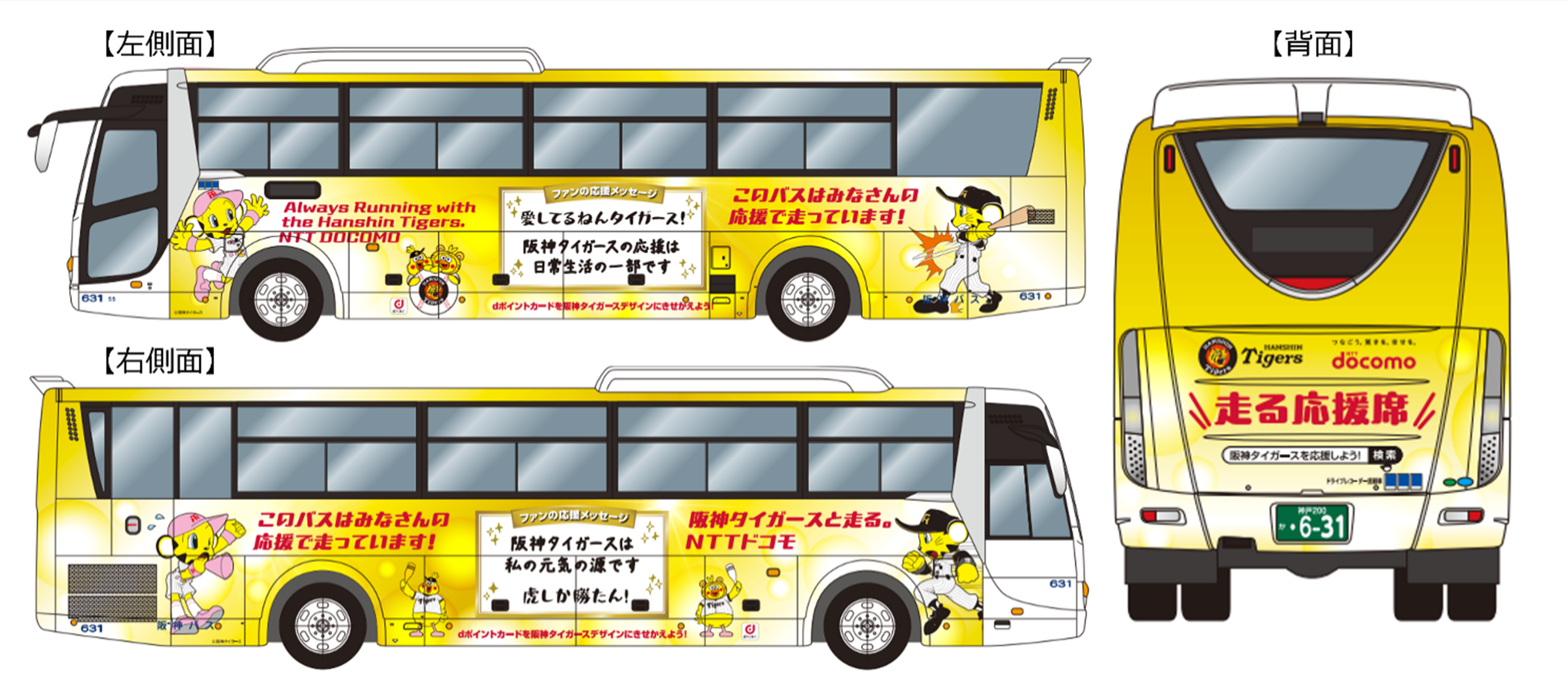 本取組みは、ファンの皆さまの「応援する気持ち」を目に見える形で街に届けることを目的としたもので、伊丹空港・関西国際空港と阪神間の拠点を結ぶ阪神バスのリムジンバス1台に、阪神タイガースの人気マスコットやファンの皆さまから募集した応援メッセージをデザインした特別ラッピングを施し、運行します。