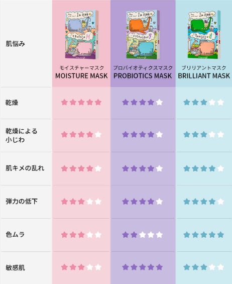 スキンケアの不必要な過程を減らして肌の疲れを癒し、スキンケア段階を簡素化させるために主力製品のマスクパックを中心に肌に必要なスキンケアだけをラインナップ。