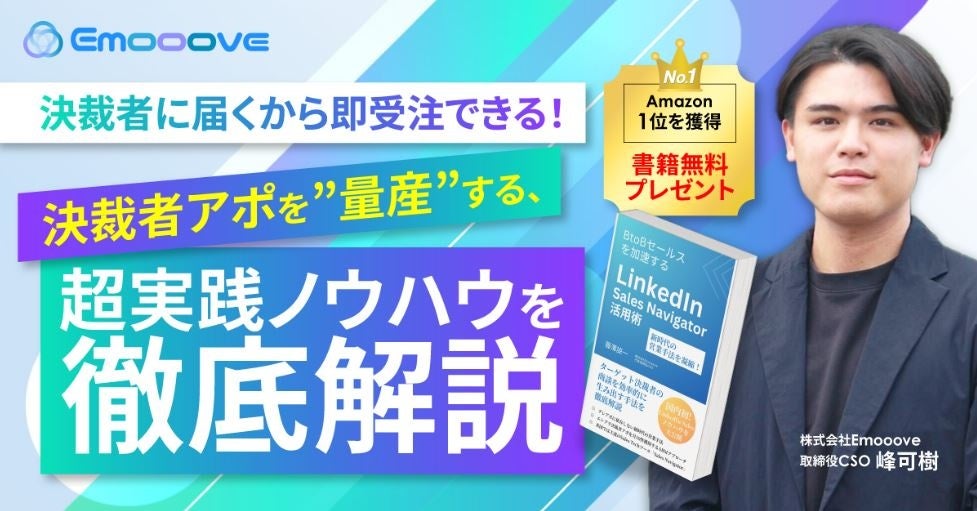 株式会社Emooove(本社:東京都渋谷区、代表取締役CEO:藤澤諒一)は、2025年2月27日(木)にBtoB営業の方向けに無料WEBセミナー「【決裁者に届くから即受注できる!】決裁者アポを”量産”する、超実践ノウハウを徹底解説」を開催いたします。