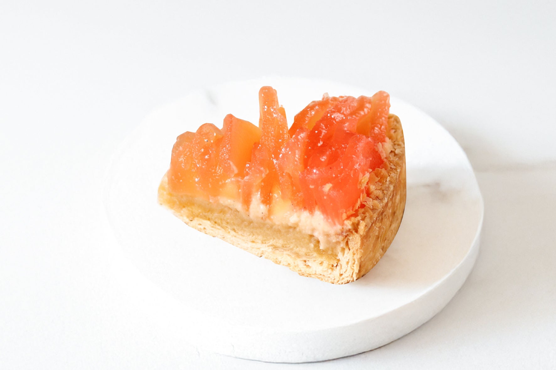 口に運ぶと、りんごのシャキシャキとした食感と優しい甘さ、カスタードクリームとアーモンドクリームの豊かな風味が絶妙に調和します。サクッとしたパイタルトも香ばしく、見た目の華やかさと素材の味を活かした上品な味わいが、お母様への感謝の気持ちを伝えるのにふさわしい逸品です。