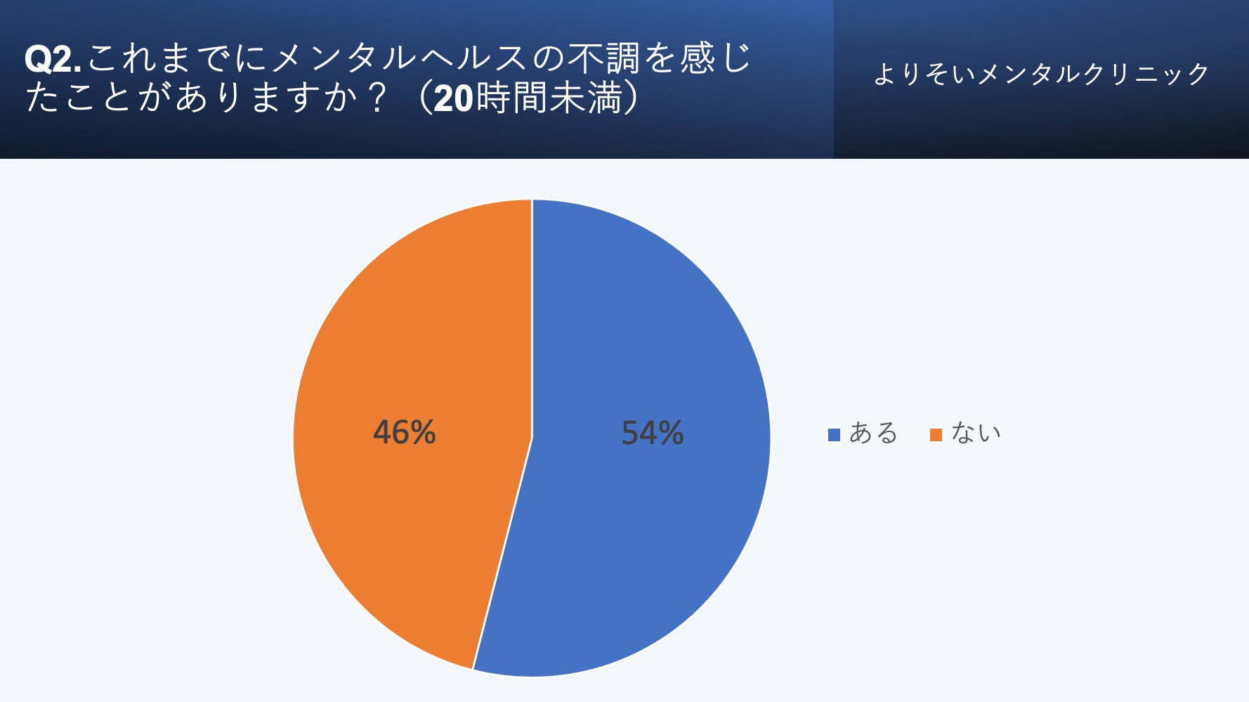 週あたりのインターネットの利用時間が20時間未満の方に対して、これまでのメンタルヘルス不調の経験について調査しました。