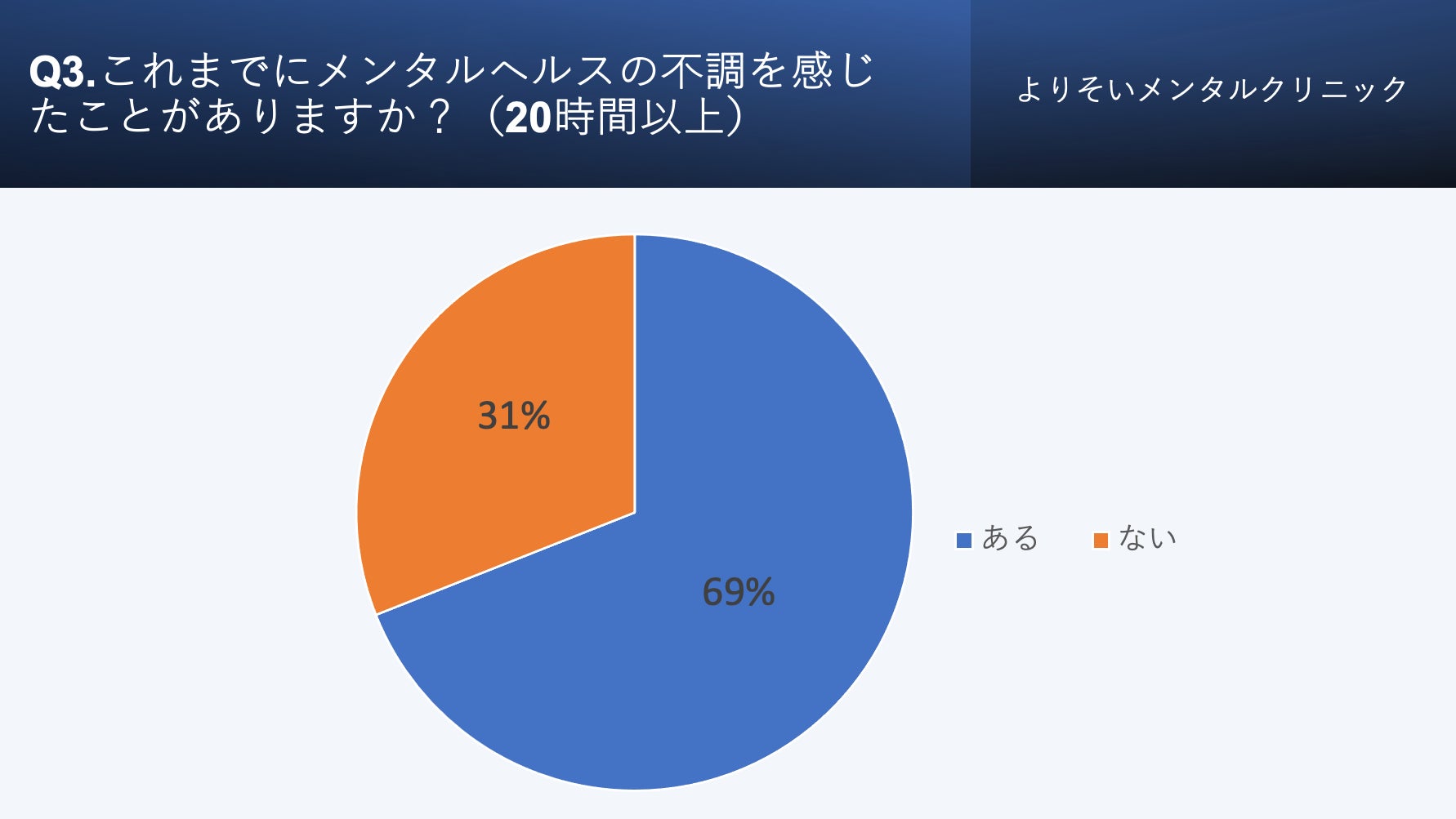 その結果、インターネットの利用時間が長い方のメンタル不調経験者の割合は69%であることが分かりました。