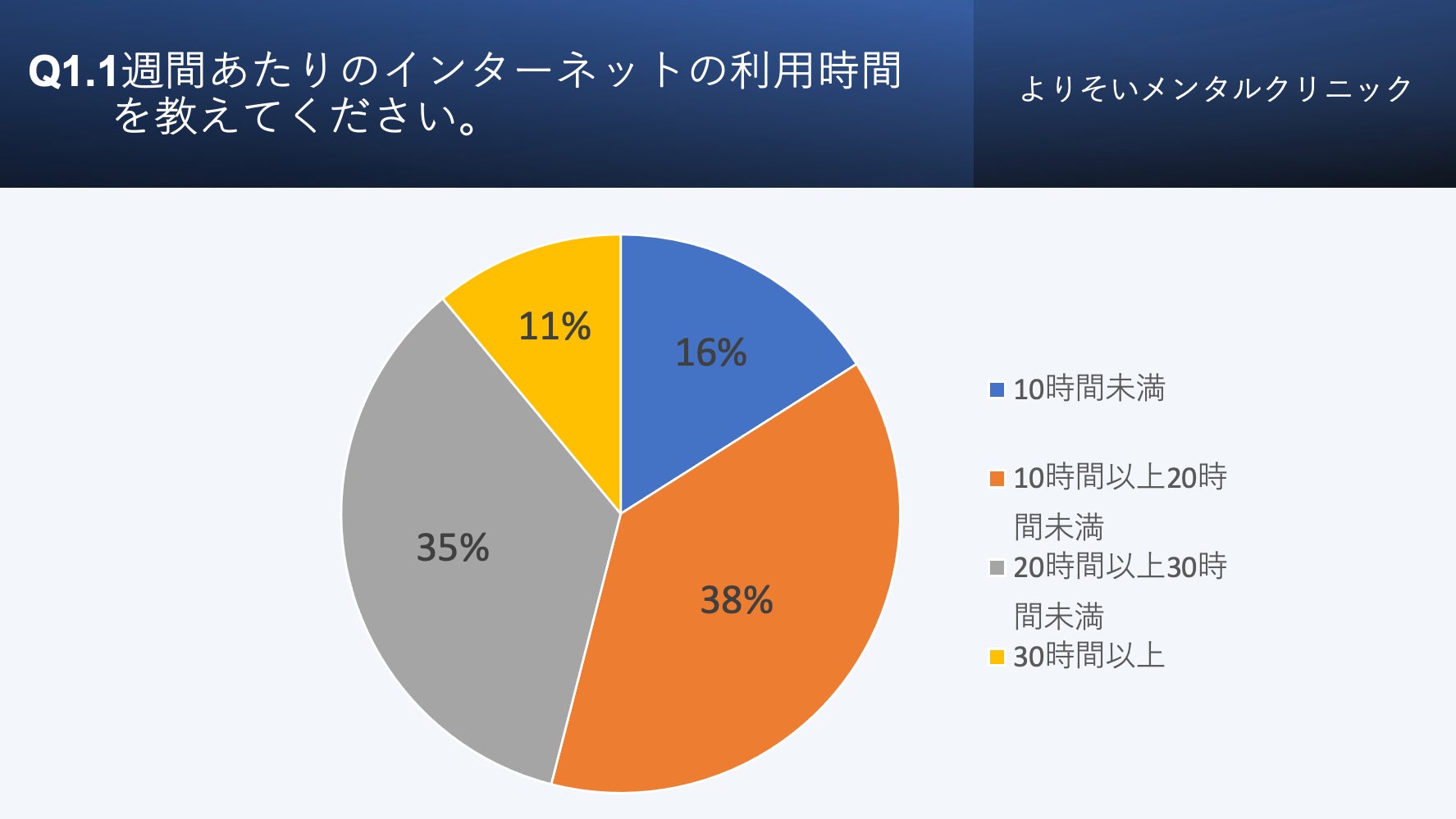 その結果、1週間あたりのインターネットの利用時間が20時間を超える方は46%もいることがわかりました。