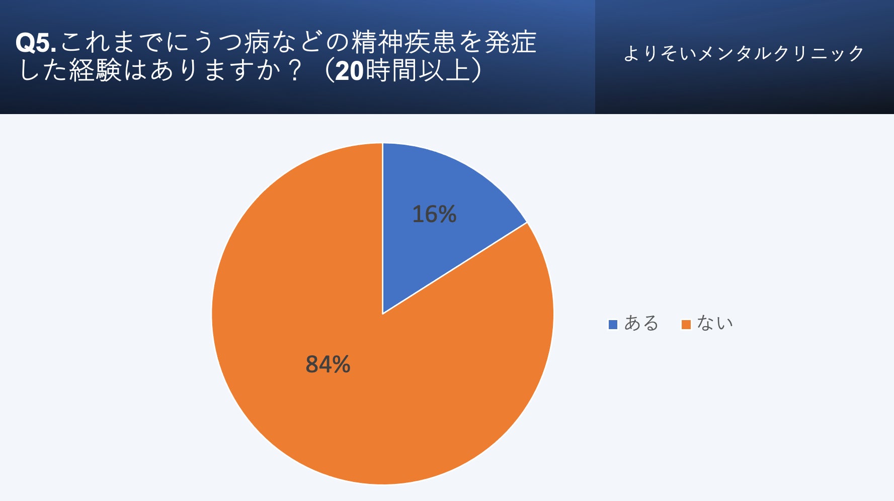 週あたりのインターネットの利用時間が20時間を超える方に対して、これまでの精神疾患経験の有無について調査しました。