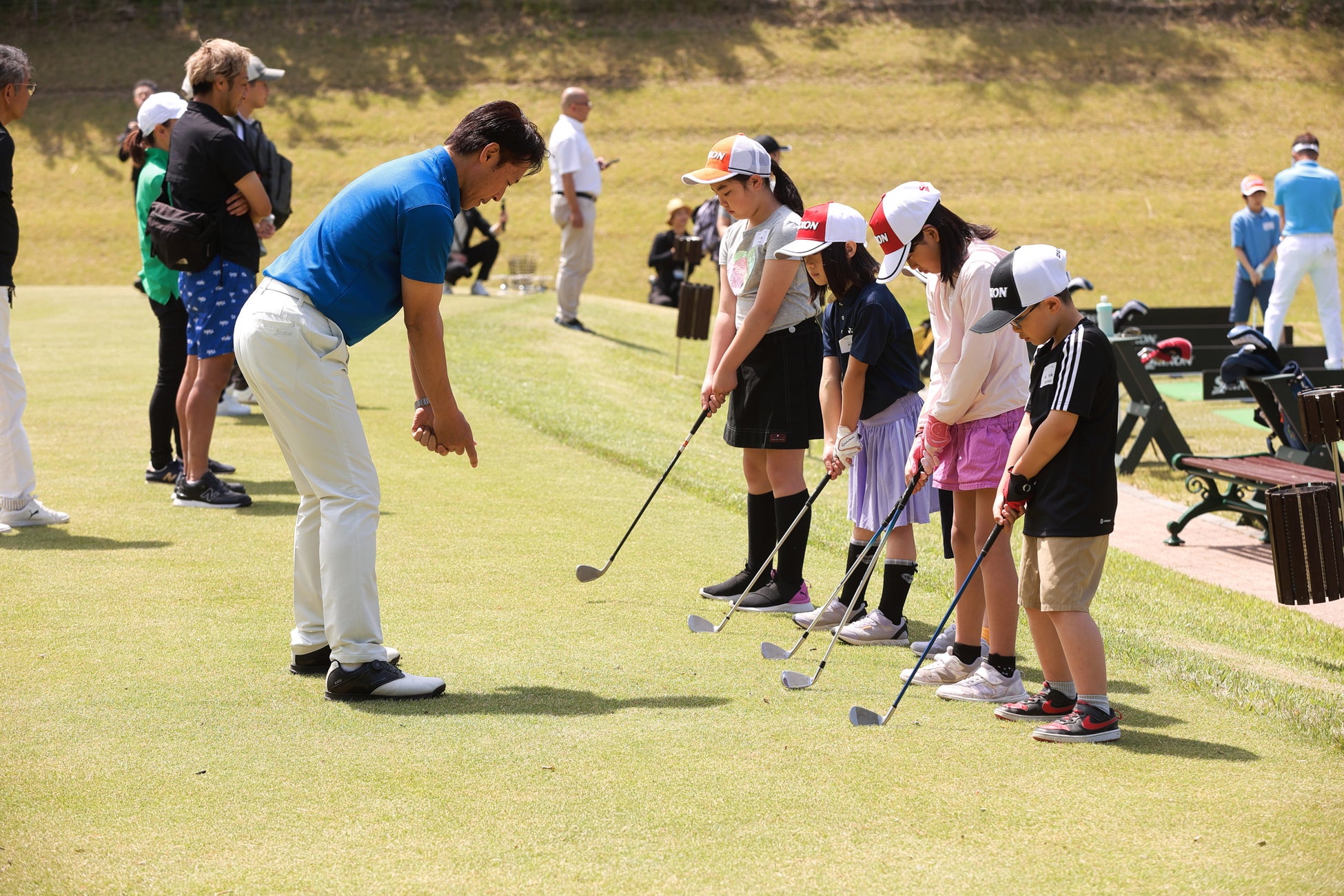 午前の部は初心者から参加可能、午後の部は上級者向けの実践的な内容で、星野プロのほか、ティーチングプロの講師陣による丁寧な指導を予定しています。貸クラブの用意もあるため、ゴルフ未経験のお子様も安心してご参加いただけます。