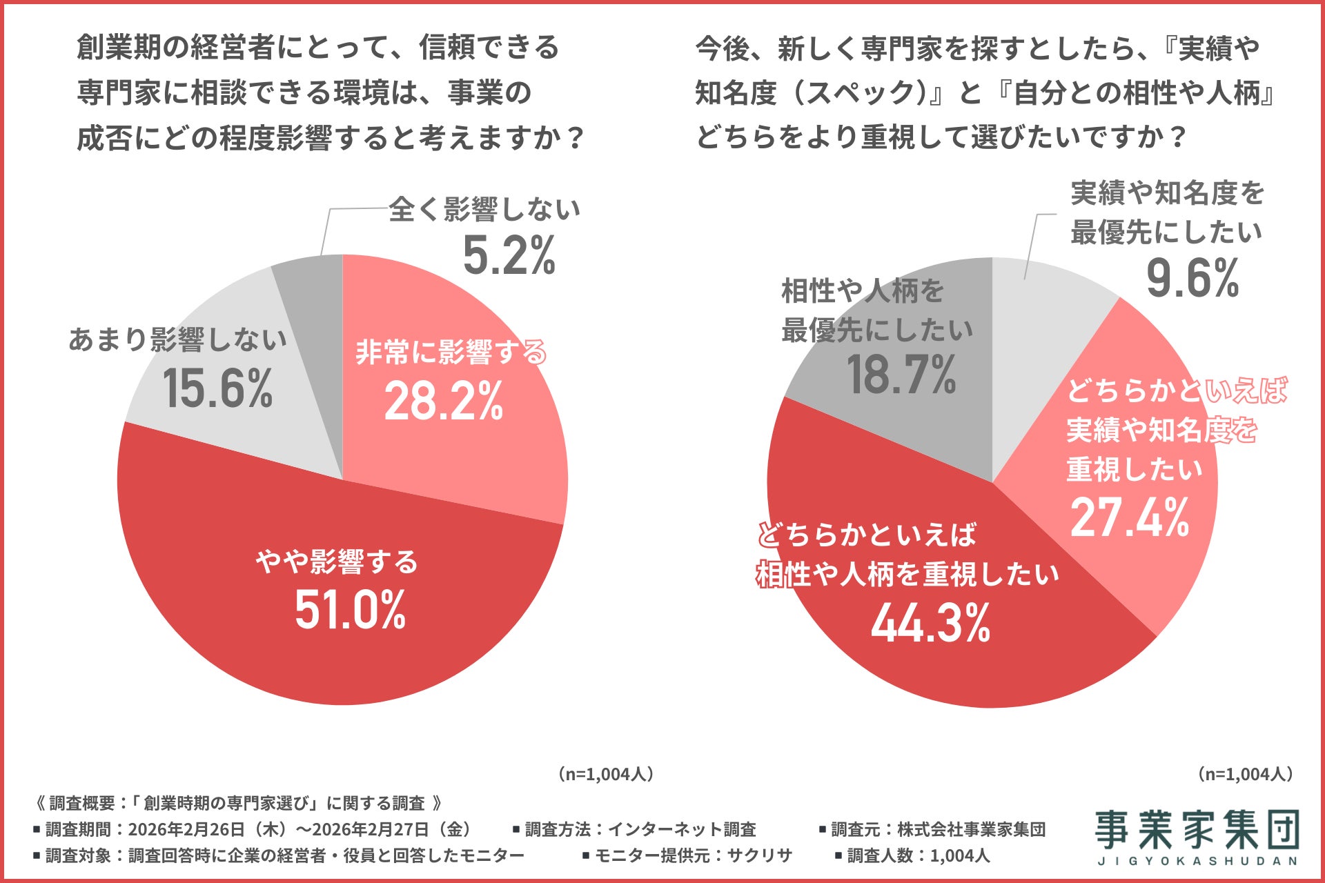 株式会社事業家集団(東京都千代田区、代表取締役:田辺由美子)は、企業の経営者・役員を対象に「創業時期の専門家選び」に関する調査