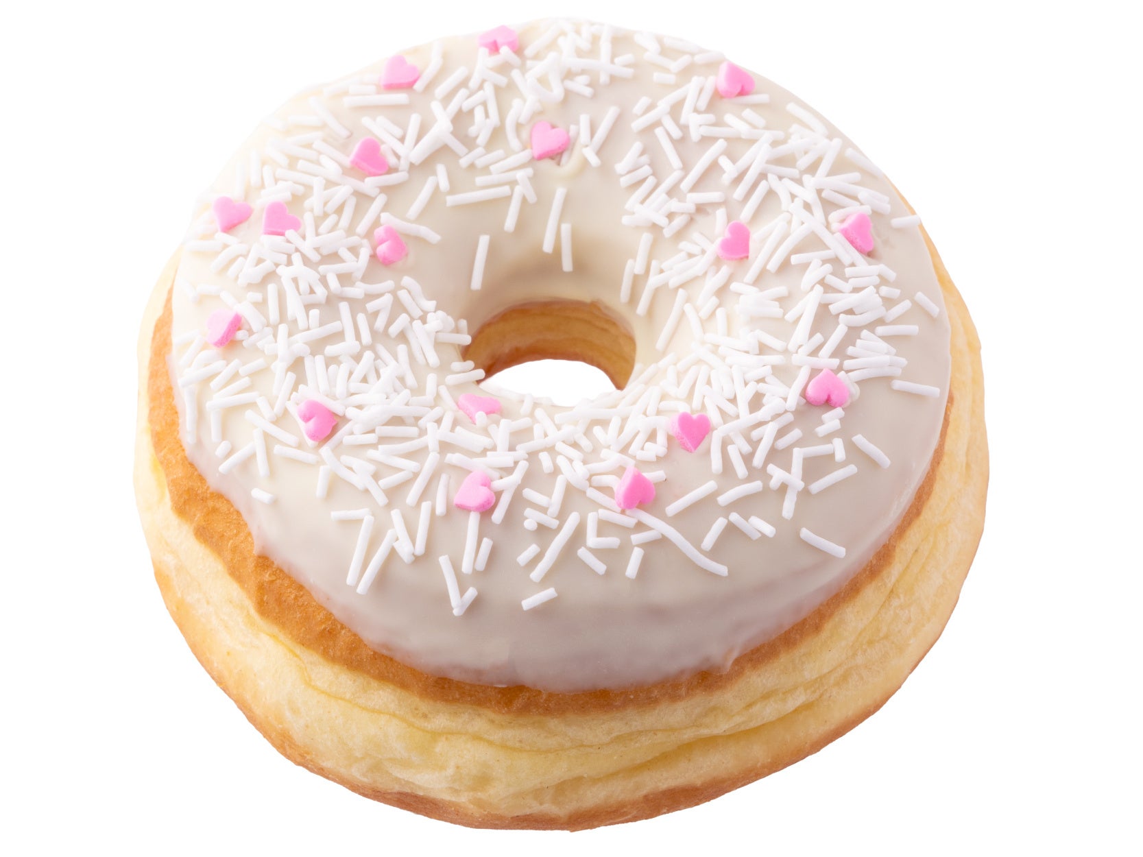 優しい甘さのホワイトチョコにピンクのハート型と白のスプリンクルをトッピングしました。華やかでかわいい見た目がホワイトデーのギフトなどにも最適な季節限定ドーナツです。