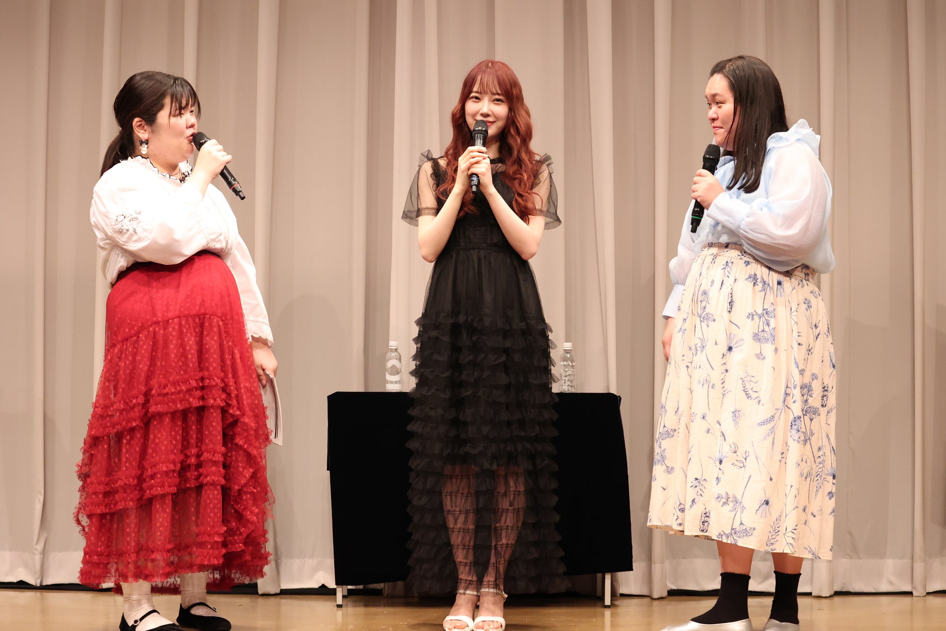 完成発表イベントでは、主演の堀未央奈、ゲストMCとしてグルメドラマということで食通のイメージのあるぼる塾のあんりと田辺智加が登壇し、グルメトークを繰り広げました。また、本日の第1話試写をもって、主題歌が持田香織さんの「weather」に決まったことが発表されました。