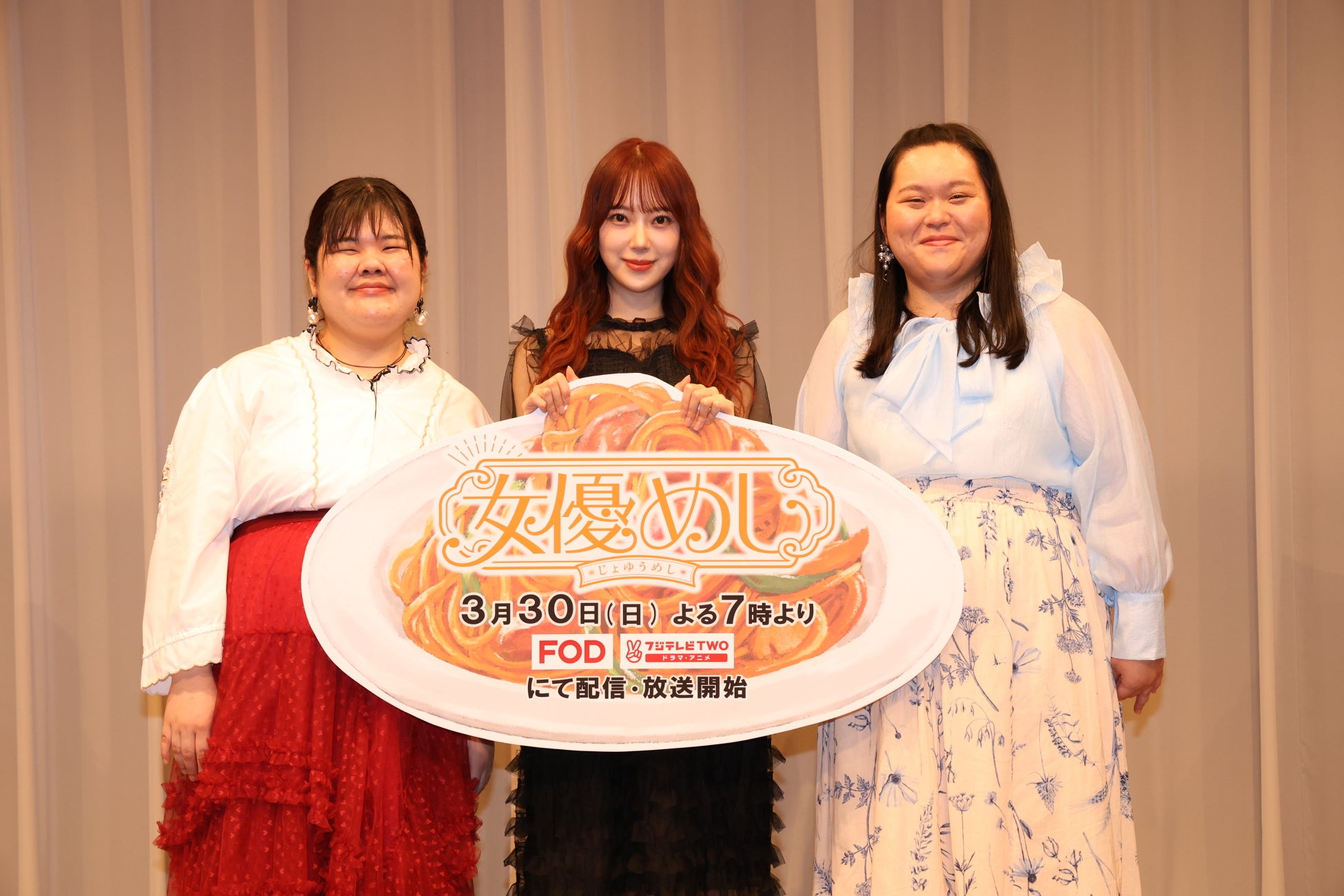 フジテレビが運営する動画配信サービスFODと、フジテレビTWOにて、3月30日(日)19時より配信・放送のドラマ『女優めし』の完成披露イベントを3月24日(月)に、フジテレビ本社マルチシアターにて開催しました。