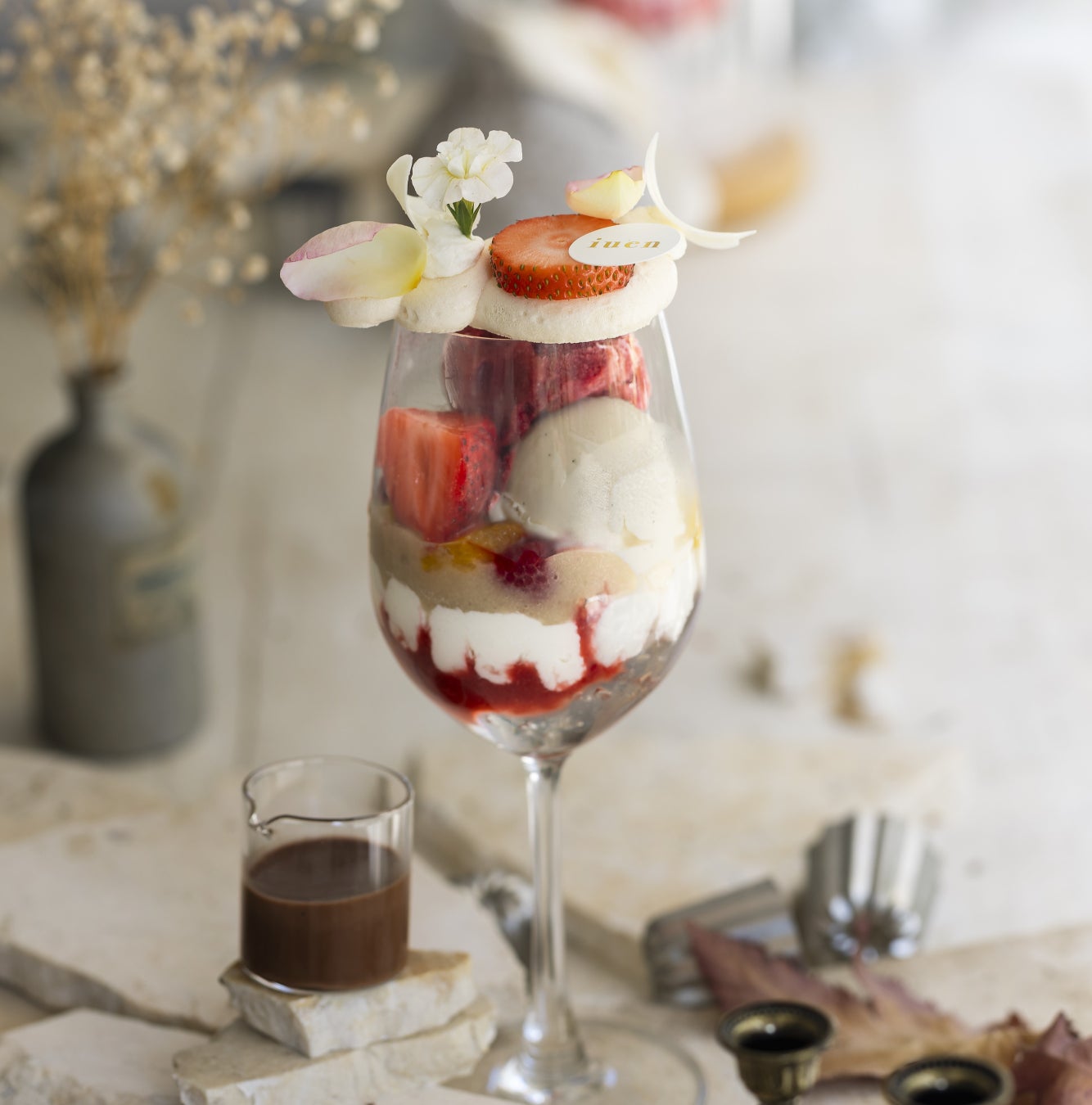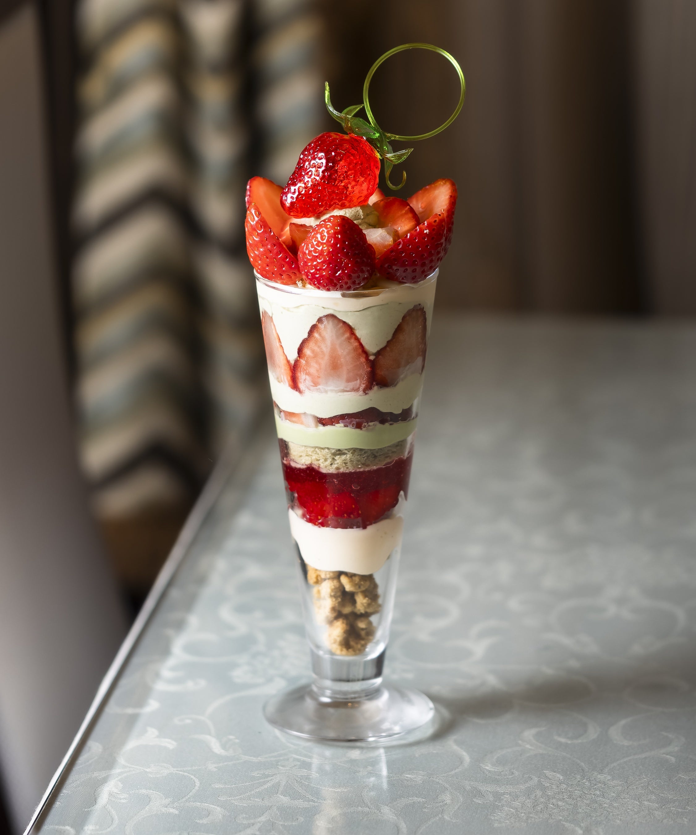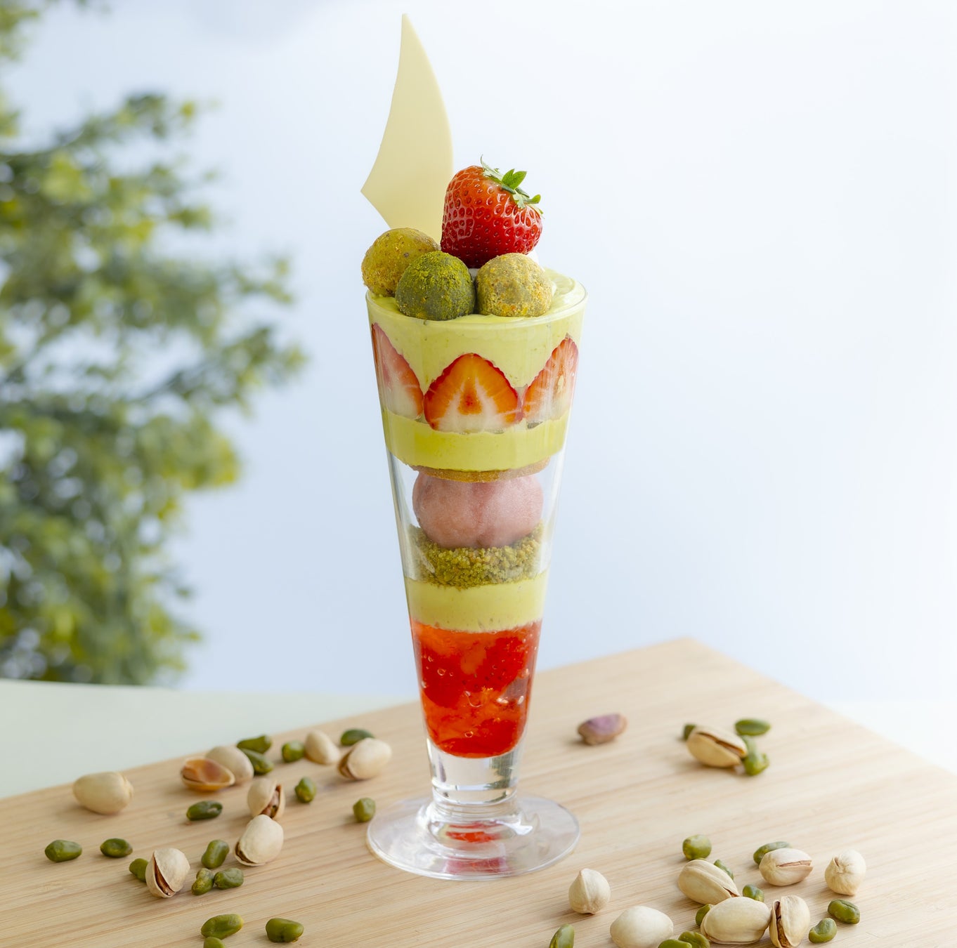 3種の焙煎ピスタチオ 生チョコトリュフとあまおうのパフェ