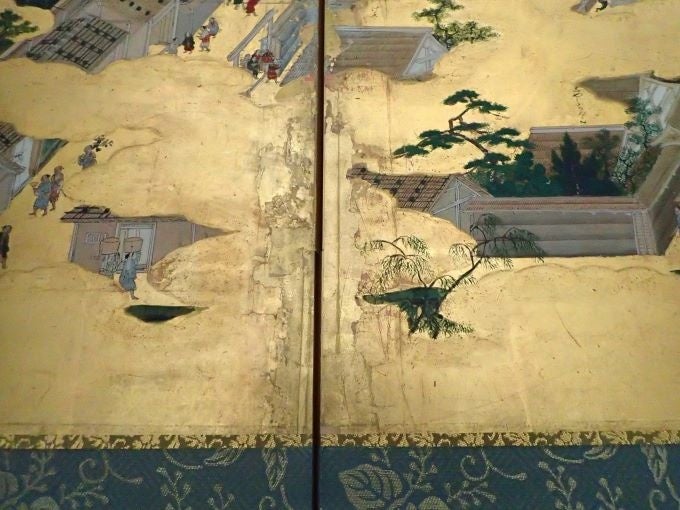 織田信長から上杉謙信に贈られたとされるこの屏風には、歴史の重みと人々の暮らしが活き活きと描かれています。