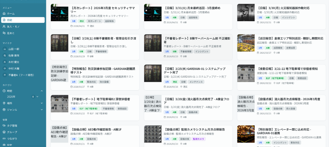 各データは常時記録され、異常検知時にはイベント前後の情報が自動的に保存されます。