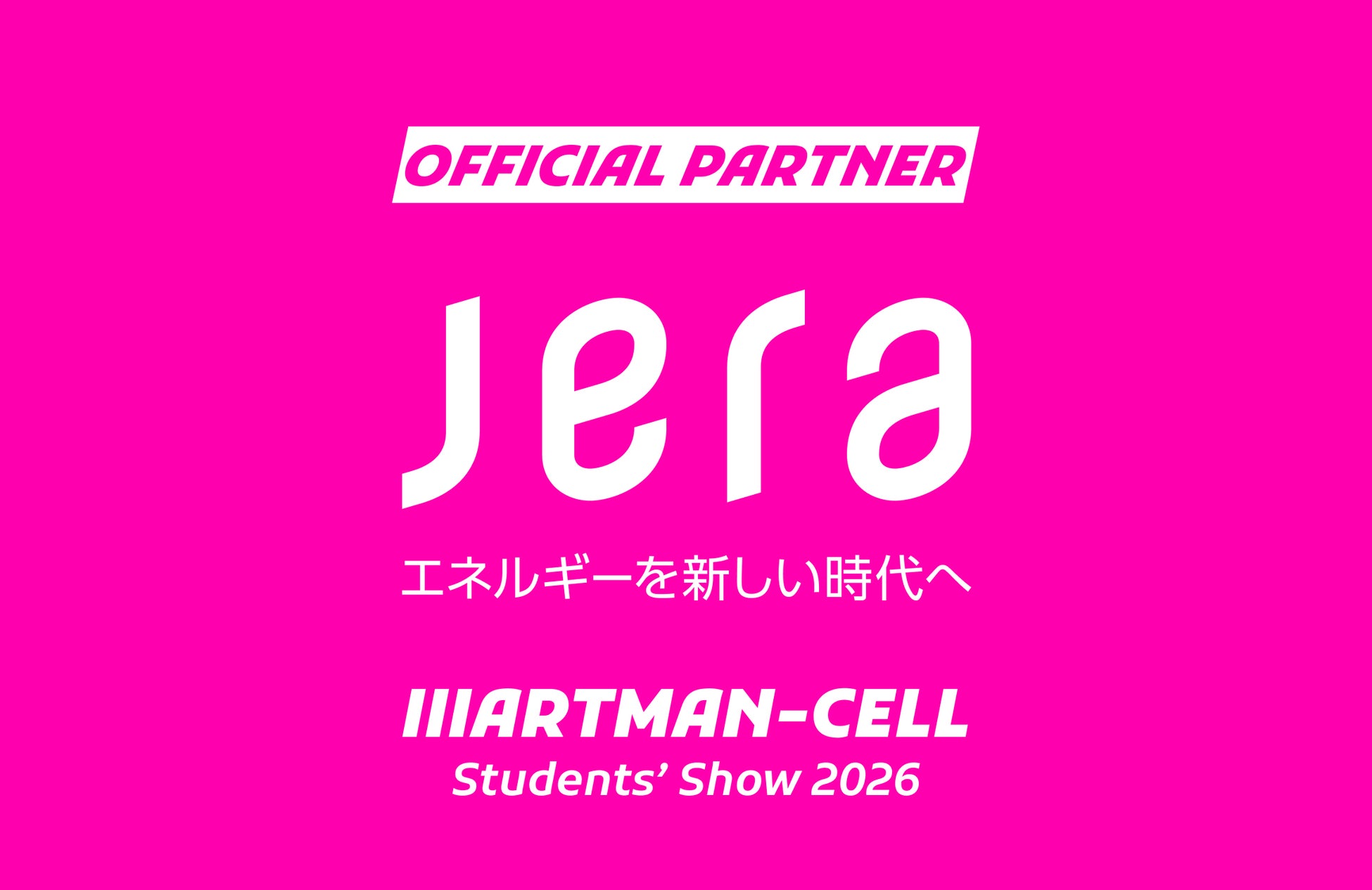 2025年の初開催を経て迎える2026年第2回目の開催より、世界のエネルギー問題の解決に挑むJERAがオフィシャルパートナーとして加わることで、「ⅢARTMAN-CELL –Students’ Show」は新たな推進力を得て、若いエネルギーと次世代の創造性を社会へ接続するプロジェクトとしてさらに発展していくことを目指します。
