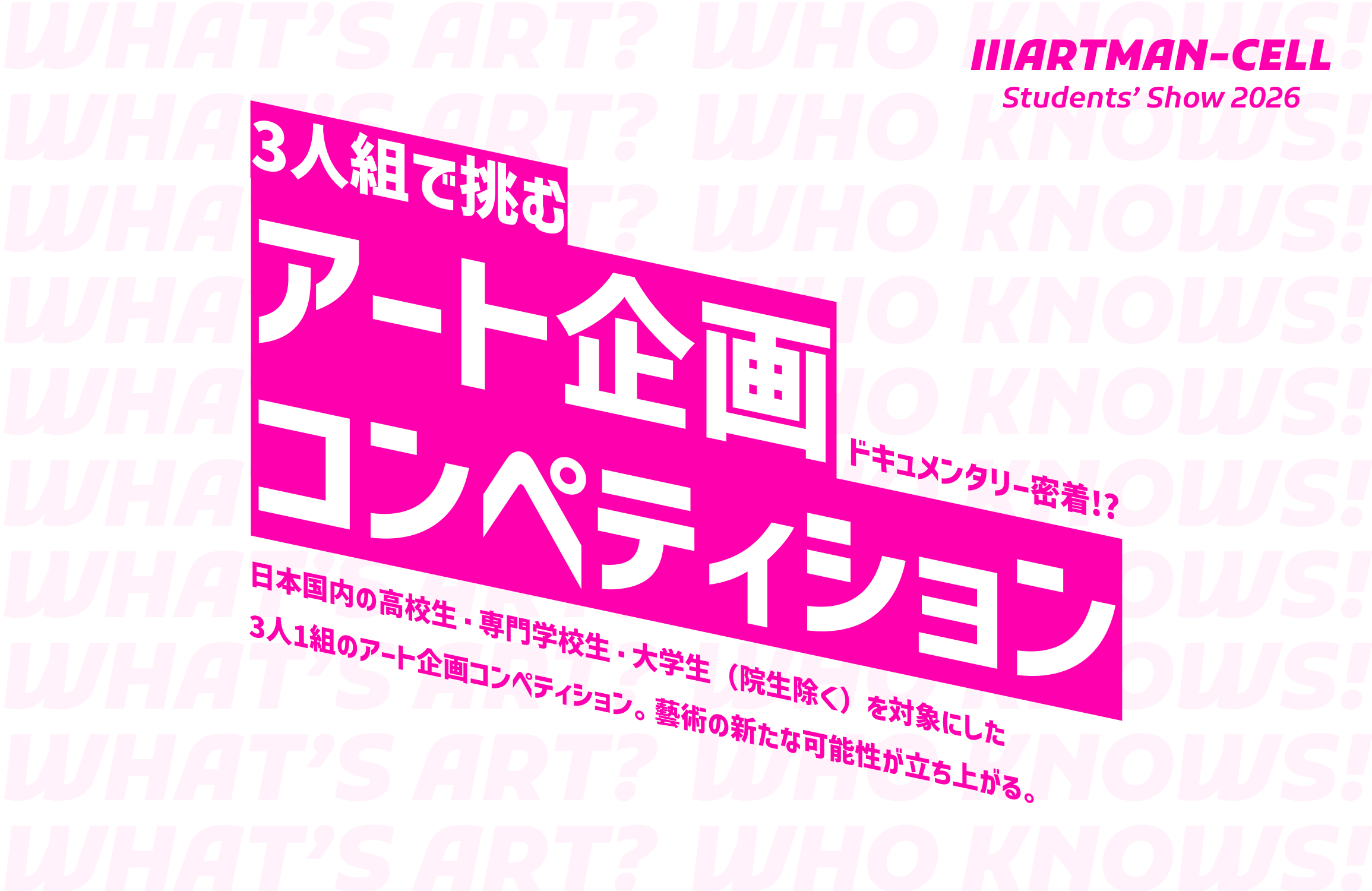 「ⅢARTMAN-CELL –Students’ Show」は、次世代を担う学生たちが、現代社会との接続を背景に、「芸術とは何か」という根源的な問いに向き合い、三人一組のチームで思考、企画、表現する、全く新しいアートコンペティションです。