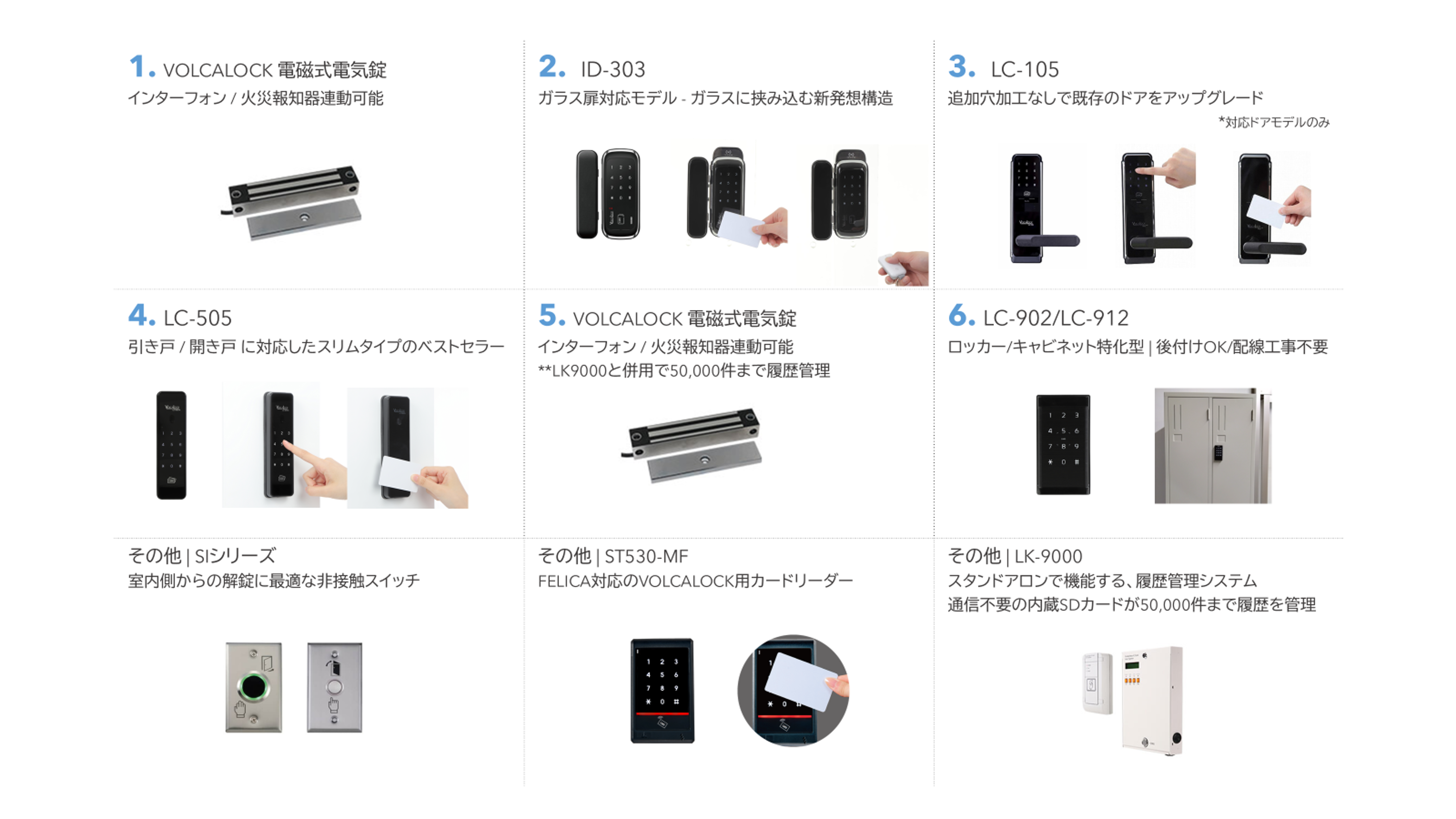 LOCKMANは、開き戸、引き戸、ガラス戸、門扉、トイレ、ロッカー、通用口など、様々な『扉』に展開が可能で、かつアクセス権限やログの管理など、入退室管理の質を短期間で向上させる、画期的なロック・ソリューションです。
