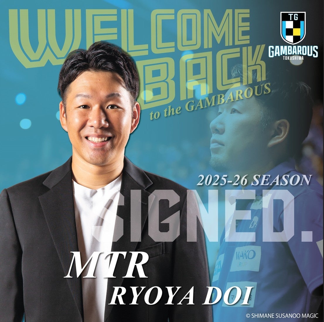 徳島ガンバロウズでは、土居諒哉氏と2025-26シーズンのメディカルトレーナー契約を締 結いたしましたのでお知らせします。