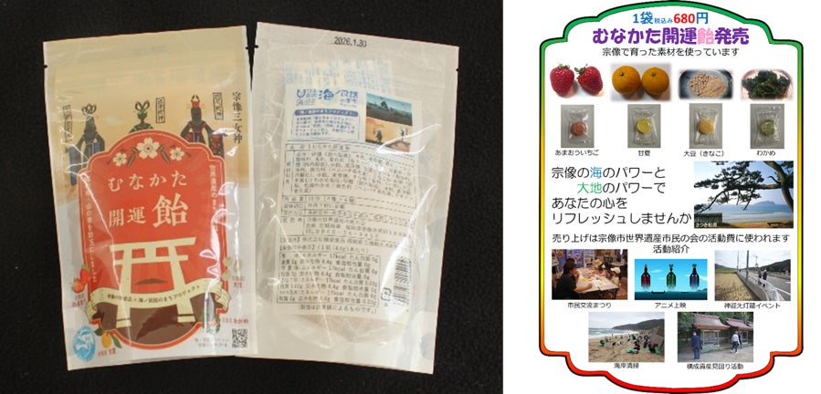 <コラボグッズ「むなかた開運飴」>