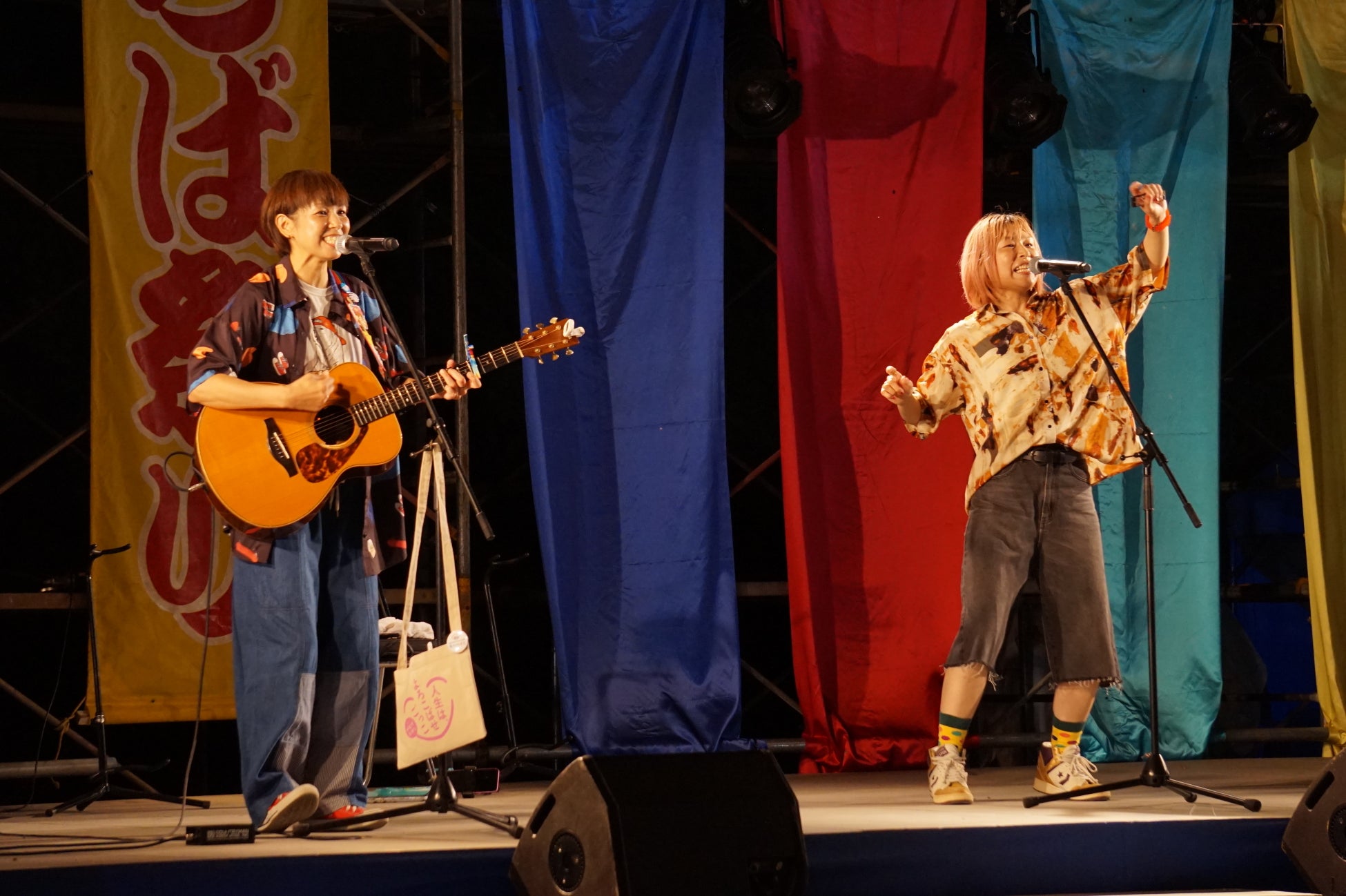 20年以上にわたってまほろば祭りのステージに立ち、祭りのテーマソングも手掛けられているお二人。貫禄とホーム感のあるパフォーマンスに、会場の盛り上がりが最高潮を迎えます。