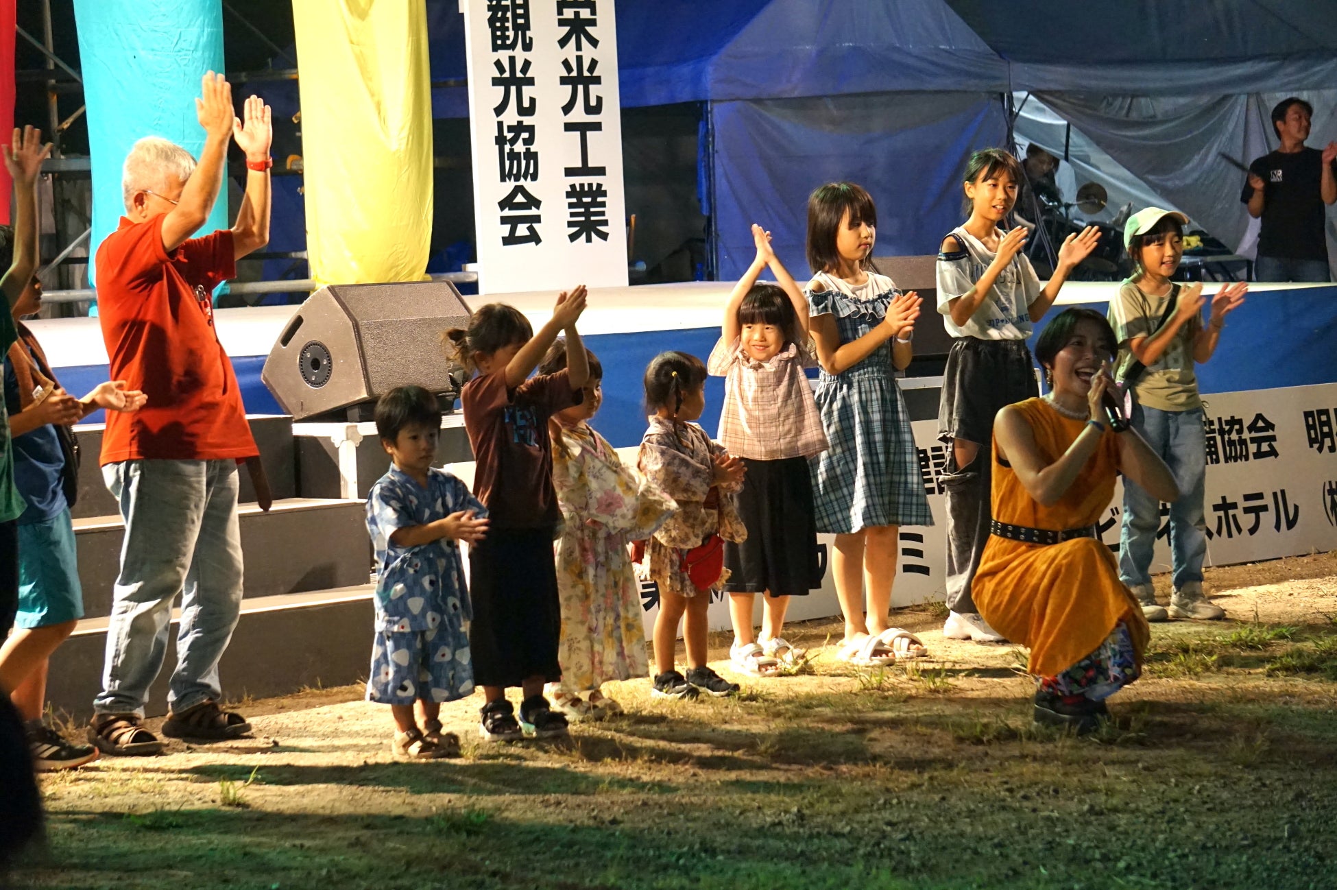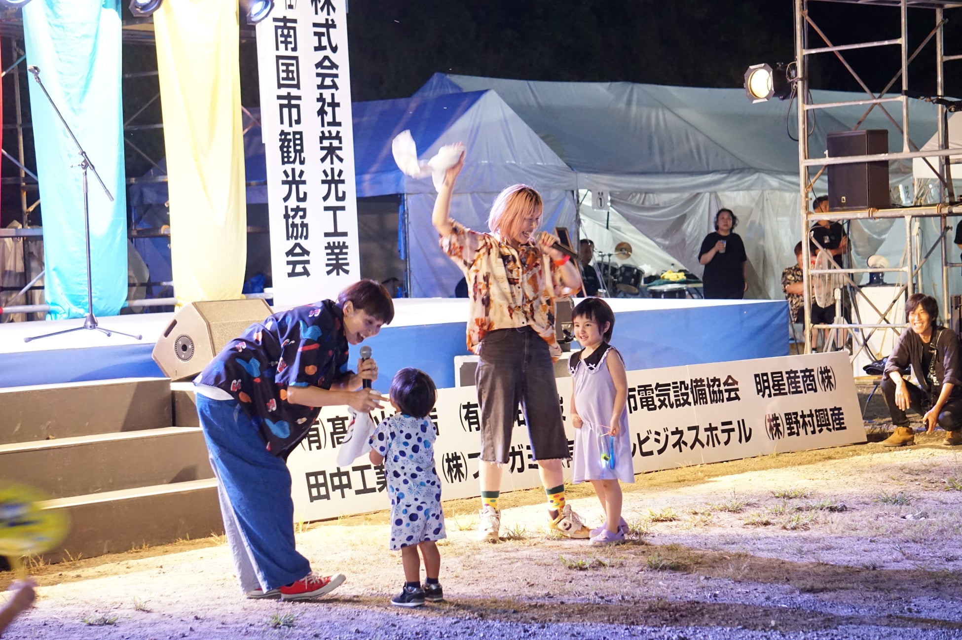 南国市の子どもたちとも歌を通して交流を持たれているそうで、パフォーマンスの途中には仲良しの子どもたちが飛び入り参加して一緒に歌や踊りを披露していました。