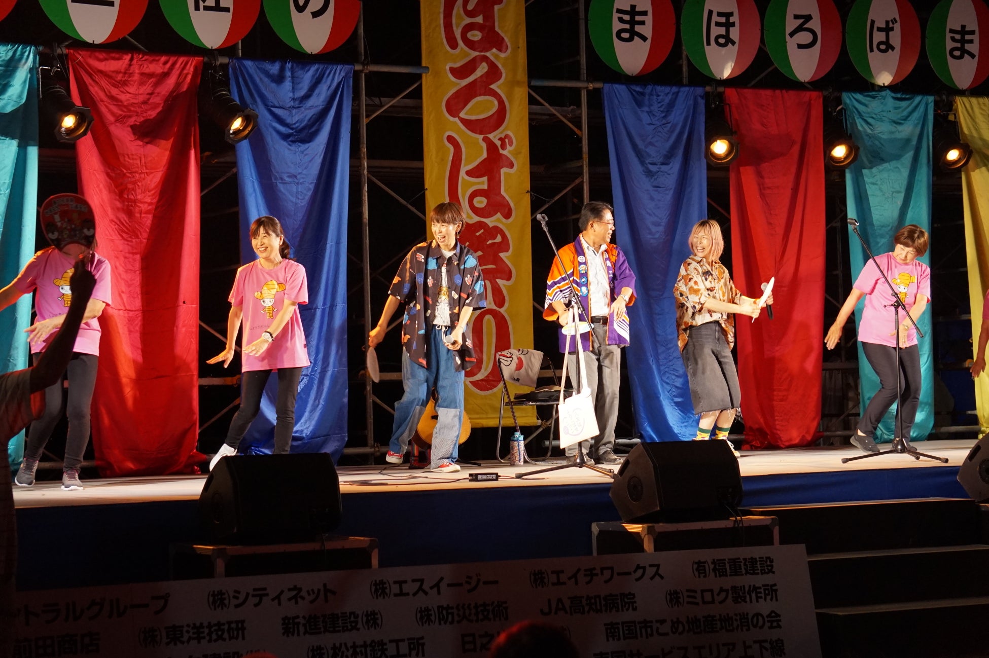 また、南国市商工会女性部のメンバーもステージに登場し、やなせさんが少年時代を過ごした南国市ごめん町のために作詞作曲した「生姜音頭」が披露されました。