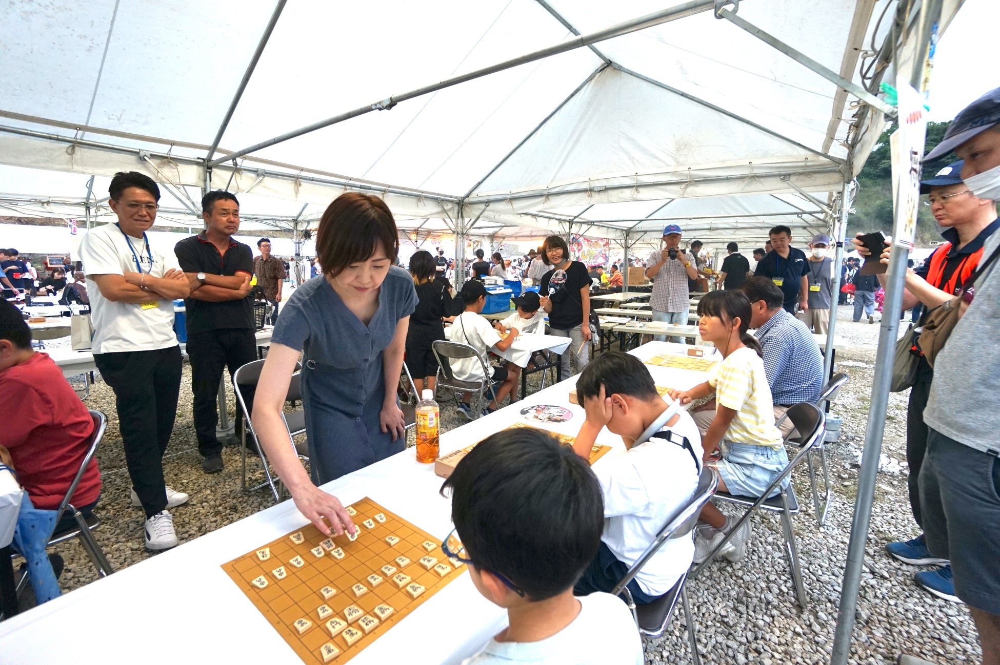 今年も赤ちゃんからお年寄りまで幅広い年代の方がご来場されているなと感じました。この将棋道場にもたくさんの方がお越しくださり、年々、女性や女の子が増えているように思います。私自身も中学3年生の時からこのブース(まほろば祭りの将棋道場)で対局させてもらっていたんですよ。プロ棋士になってからは毎年ゲストとして呼んでいただいており、とても長い間お世話になっている祭りでもあります