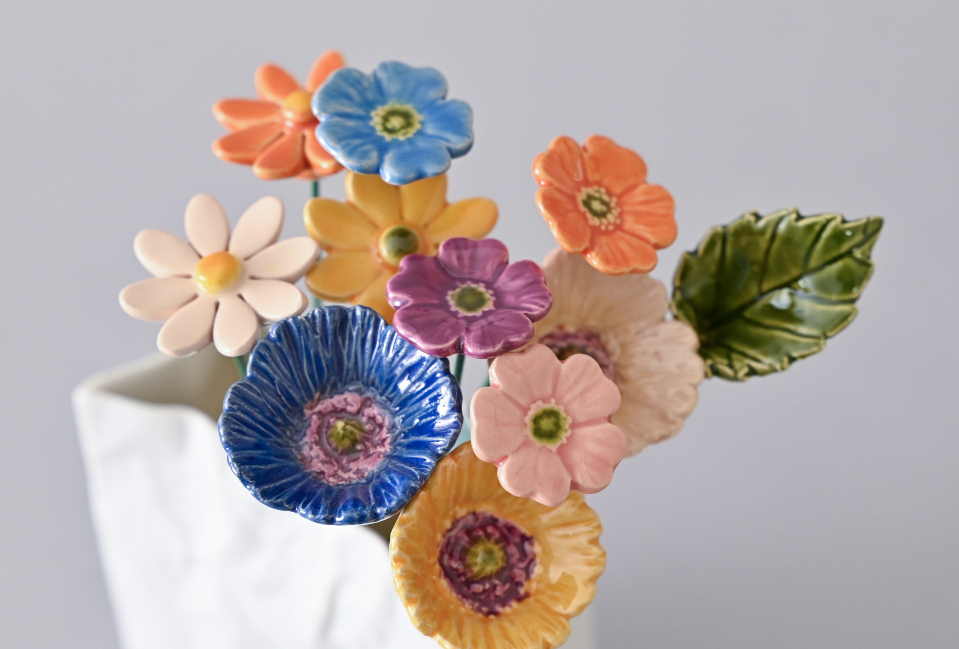 陶器ならではの艶やかさと、色の鮮やかさが魅力です。陶器の花はハンガリーの伝統的な陶器技術を受け継ぐ熟練職人によって、すべて手作りで仕上げられています。カラー、デザインが豊富で、組み合わせる楽しさも魅力の一つ。