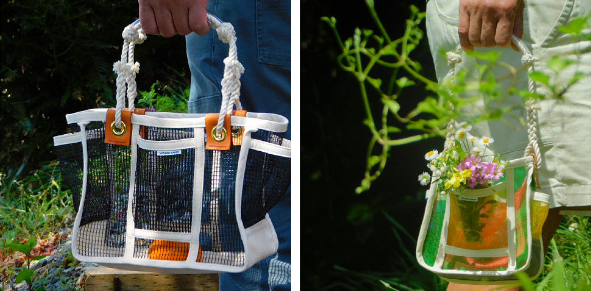 例えば、畑でみかんの収穫用に使われる網や、農業用の網、波止場で見かけるロープワークなど、そのどれもが地域で生き生きと使われているものたちです。
