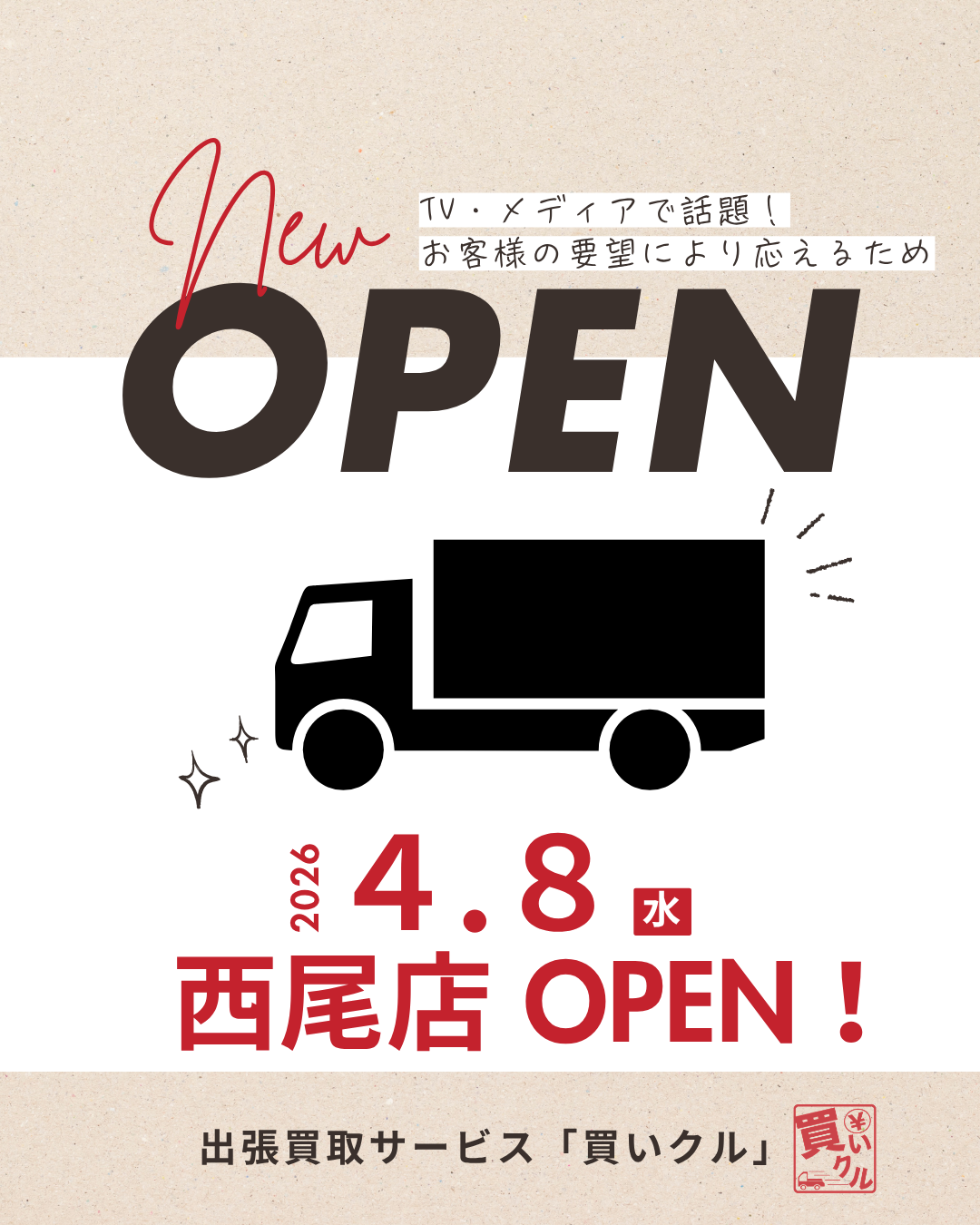 愛知県西尾市・額田郡幸田町を拠点とする出張買取専門サービス「買いクル西尾店」は、2026年4月8日(水)にオープンしました。