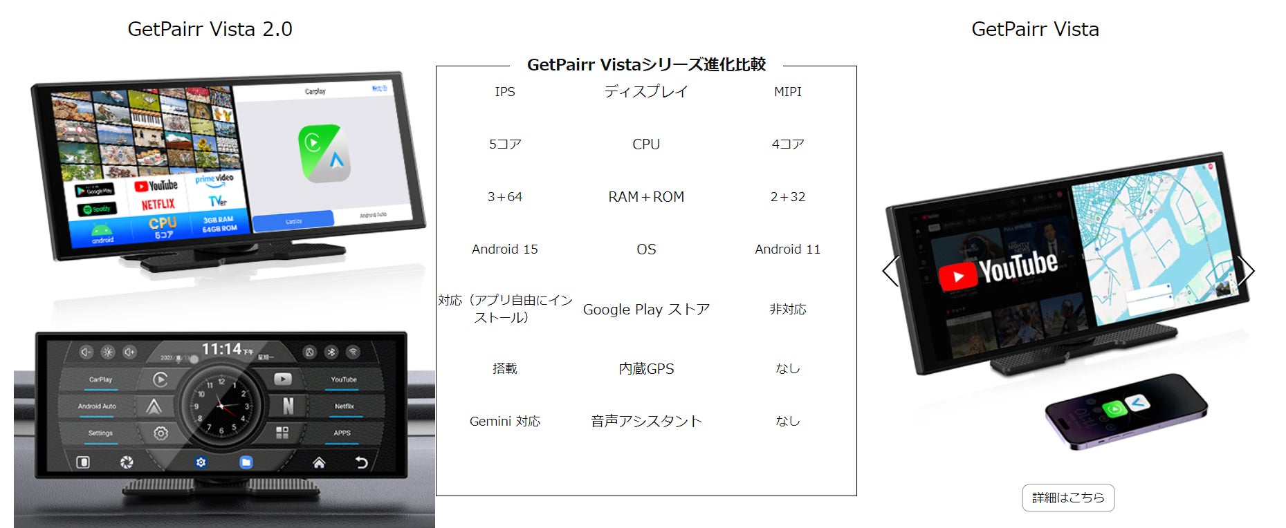 人気の11インチポータブルカーナビ「GetPairr Vista シリーズ」が