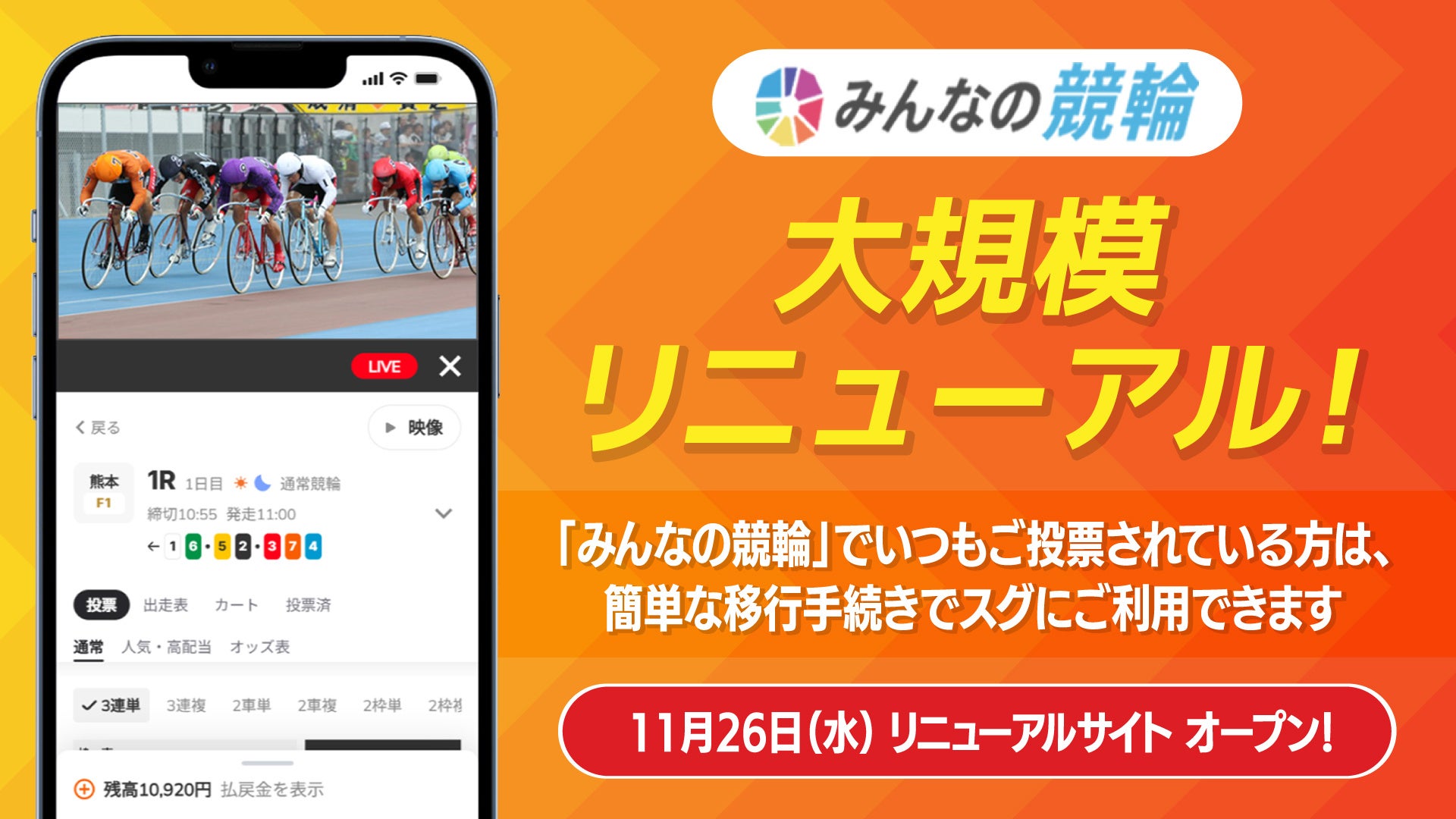 競輪投票サービス「みんなの競輪」が11月26日(水)に大規模リニューアル!