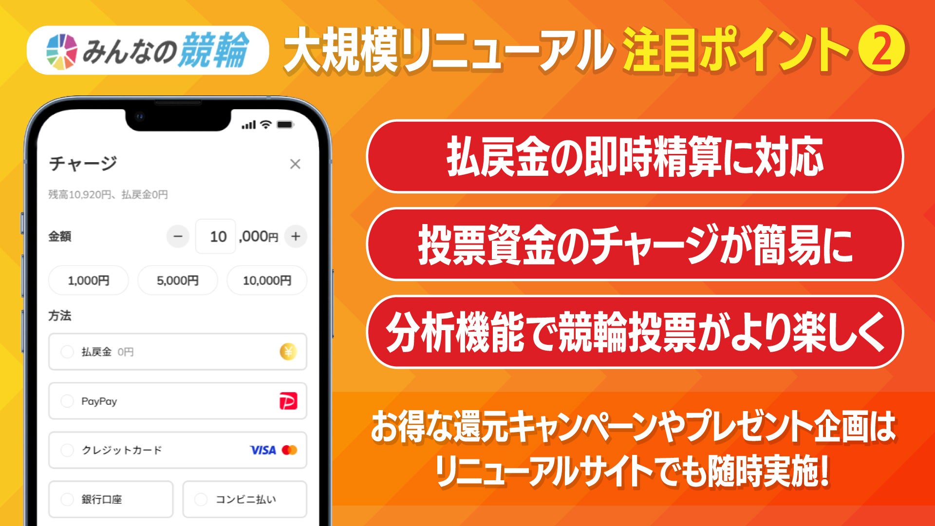 お得な還元キャンペーンやプレゼント企画につきましては、「みんなの競輪」リニューアル後も随時実施いたします。