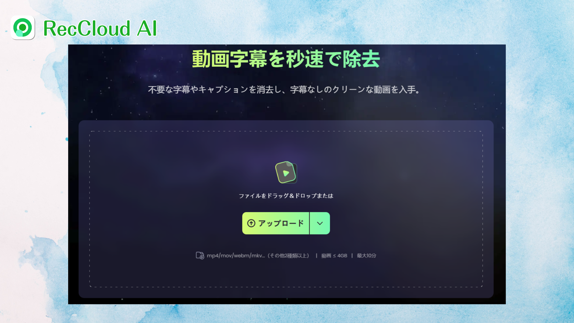 RecCloudの動画去字幕・去ウォーターマーク機能は、初めての方でも直感的に操作できるのが特長です。