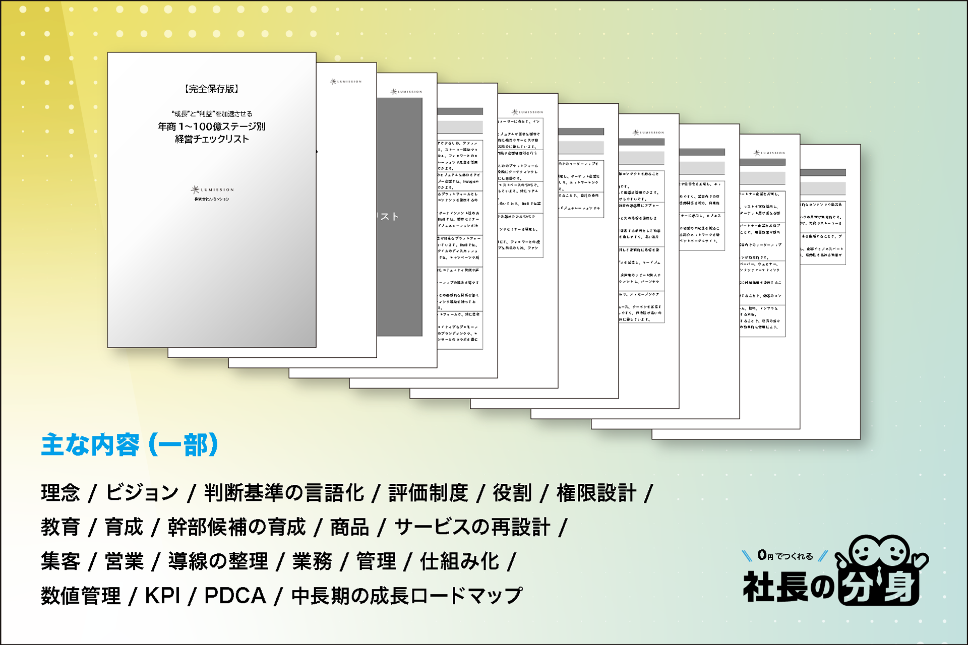 理念・組織・人材・商品・集客・営業・管理・仕組み化など、