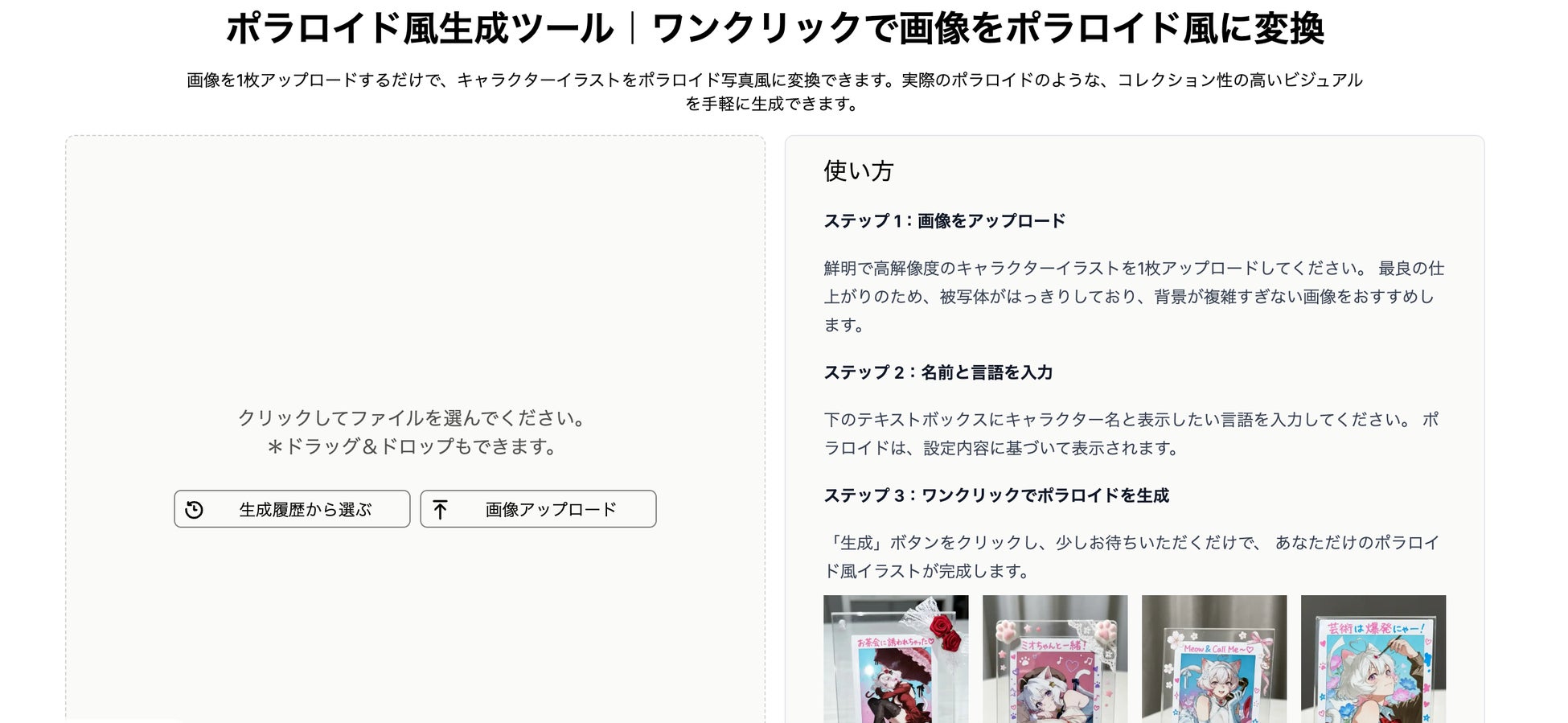 「ポラロイド風生成ツール」は、以下のような用途で活用されています。