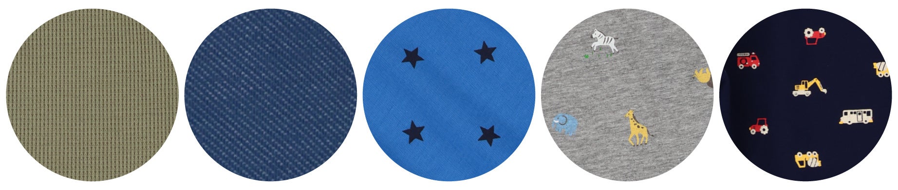 ストレッチ天竺やリブ、ワッフルなど、伸縮性に優れた素材を使用。お子さまが元気に動き回ってもストレスフリーで、お着替えもスムーズです。