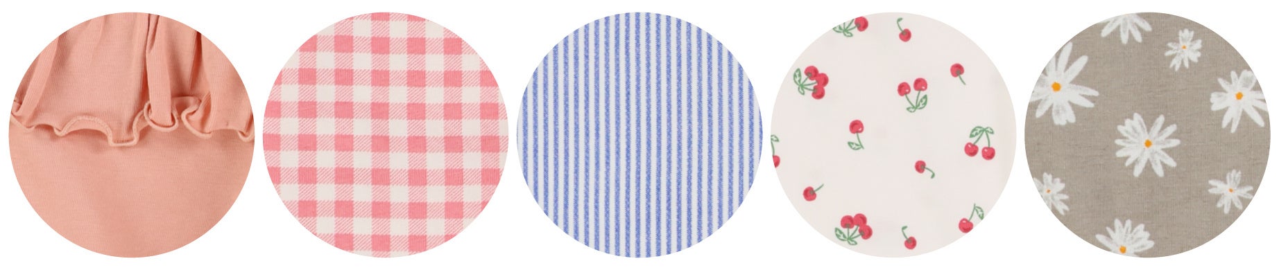 無地やチェック、ストライプなどのシンプルな定番柄から、フリル付きやかわいいモチーフの総柄まで、豊富なデザインをご用意。お子さまの好みに合わせて選ぶ楽しさ、毎日のコーディネートを決める楽しさを感じていただけるラインナップです。