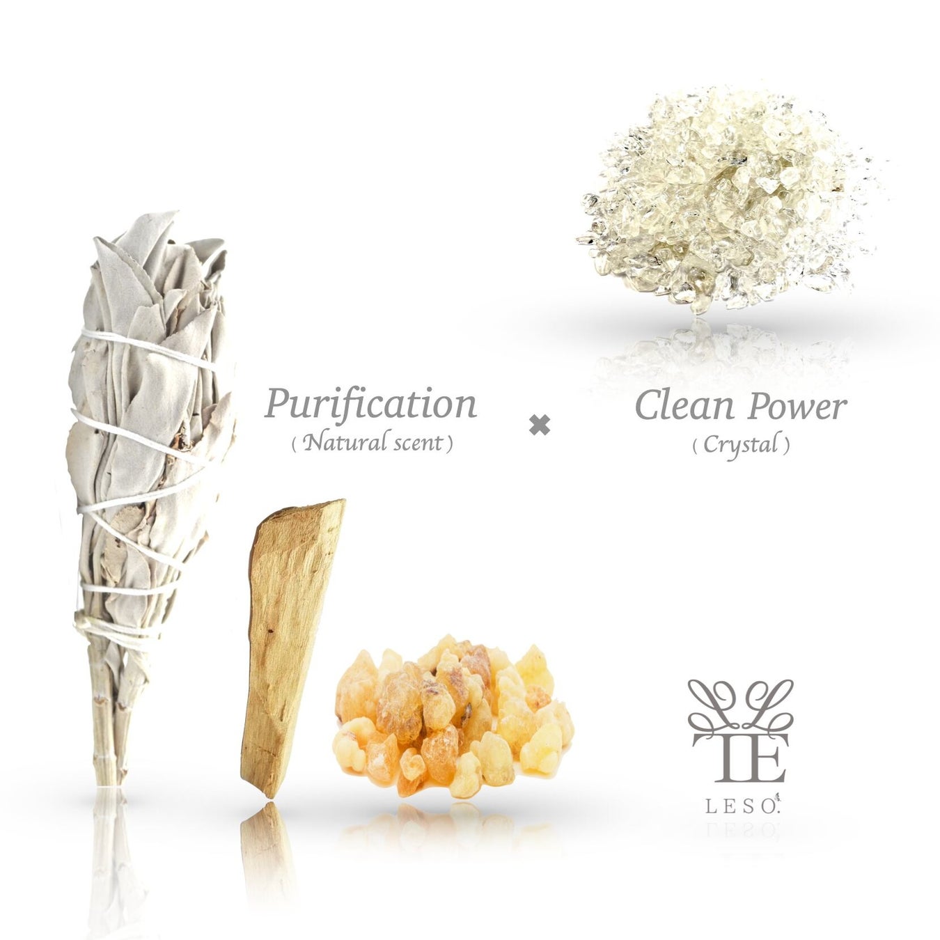 ホワイトセージ、フランキンセンス、パロサント。古来より大切にされてきた「聖なる植物」の雫を、天然石クリスタルとともに。空間を凛と整える、アロマディフューザーが登場。