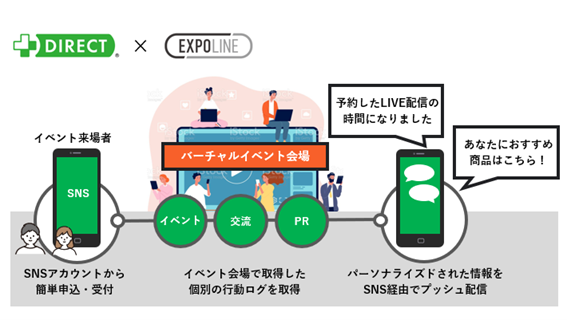 オンラインイベントプラットフォーム「EXPOLINE」が「LINE公式アカウント」を最大限に活用するデータマネジメントプラットフォーム「+DIRECT(プラスダイレクト)」と連携