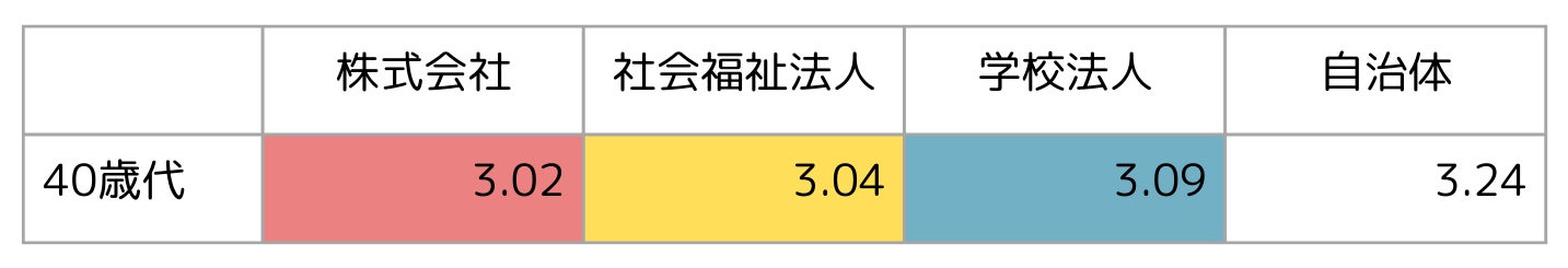 ●運営法人種別ごとの40代保育士職場評価(概要)