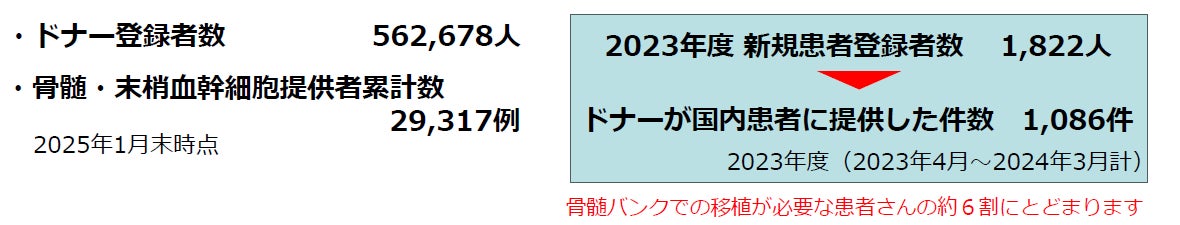 移植には患者とドナーの間で白血球の「型」が一致する必要があります。完全に一致する確率はきょうだいでは4分の1ですが、非血縁者間では数百~数万分の1です。たとえ適合しても、ドナーの都合や健康状態が整わなければ提供できません。