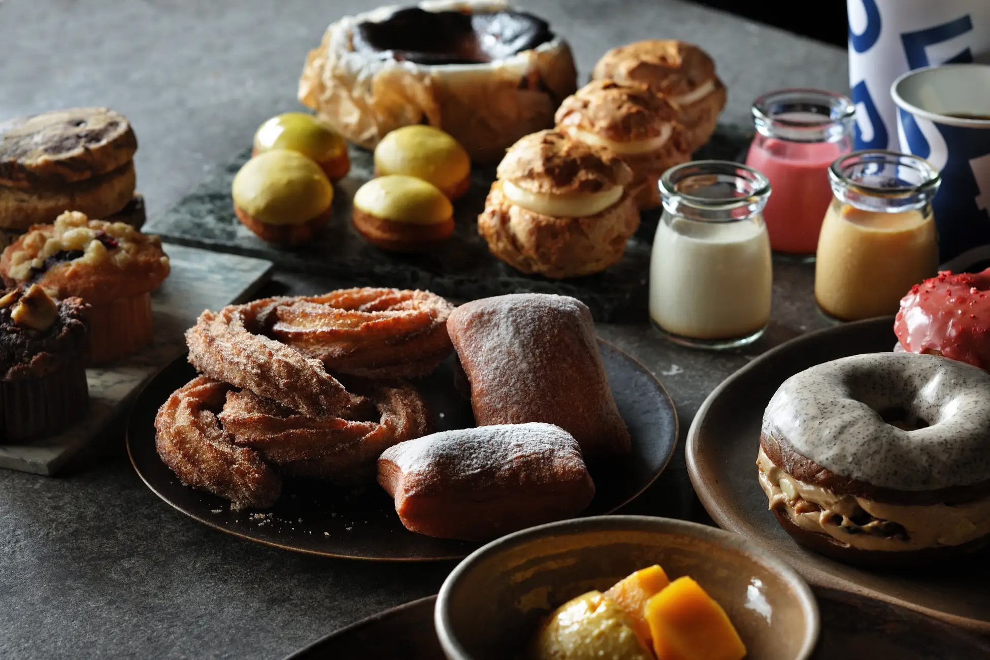 豊富な種類の焼き菓子、サンドウィッチがショーケースに並ぶ設えが印象的なカフェスタンドでは、店内で丁寧に手作りするペストリーとコーヒーをイートイン/To Goでご提供。梅田近辺のワーカーやカジュアルなユーザーにむけて、ほっと一息つけるくつろぎの時間を提供します。