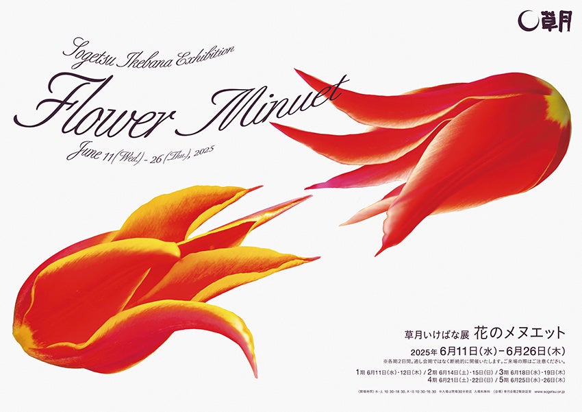 いけばな草月流(一般財団法人草月会 理事長:草月流第四代家元・勅使河原茜)は、草月いけばな展「花のメヌエット」を開催いたします。本展は、創流100周年を2年後に控えた草月流本部による企画展で、「メヌエット(小さな舞曲)」をテーマに、初夏の草月会館を優雅に彩ります。