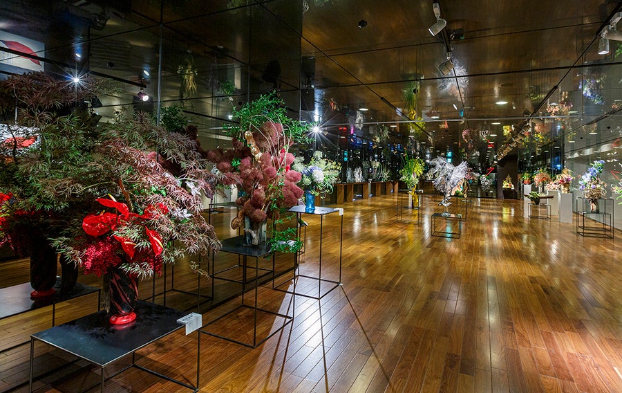 日々の稽古や指導を通して草月流の精神を伝える師範たちが、自由な発想から生まれるいけばなに、植物には欠かせない「水」を魅せる作品展示など、草月ならではの創造性あふれるいけばなの饗宴をご体感ください。