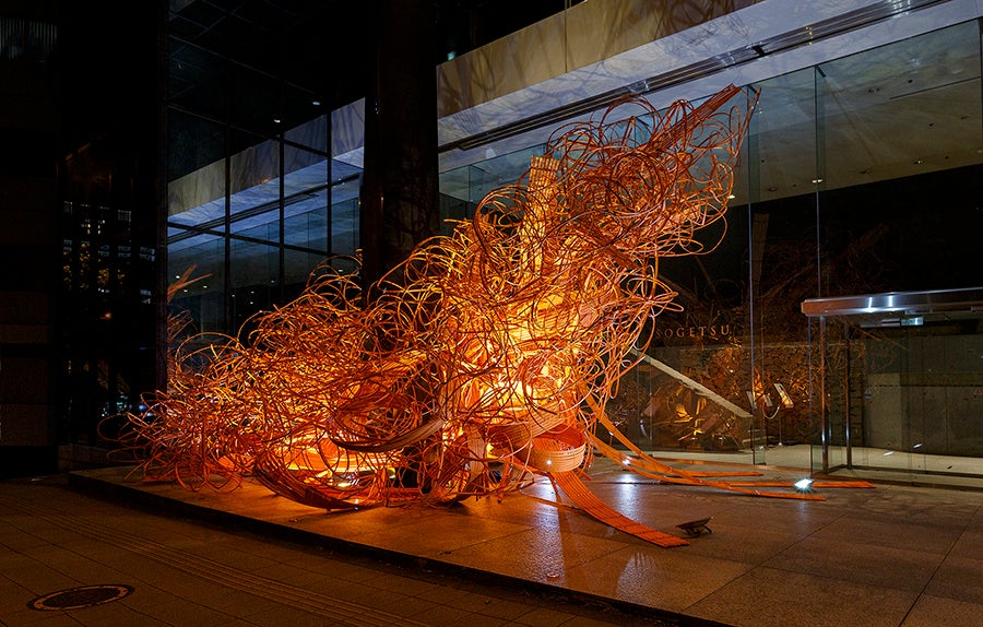 草月会館正面入口前に、今年も家元による大型インスタレーションが制作されます。