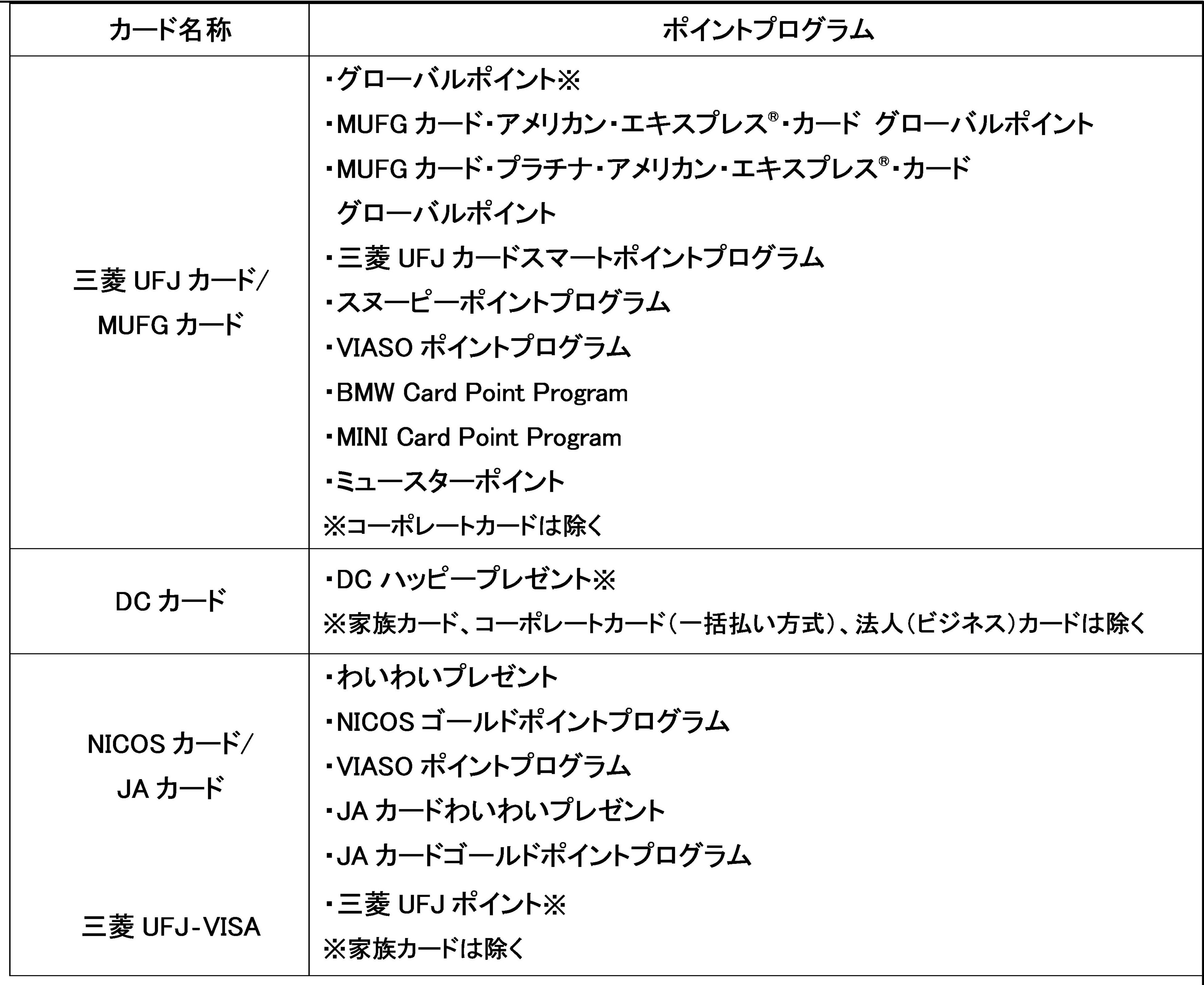■主な対象カードとポイントプログラム一覧