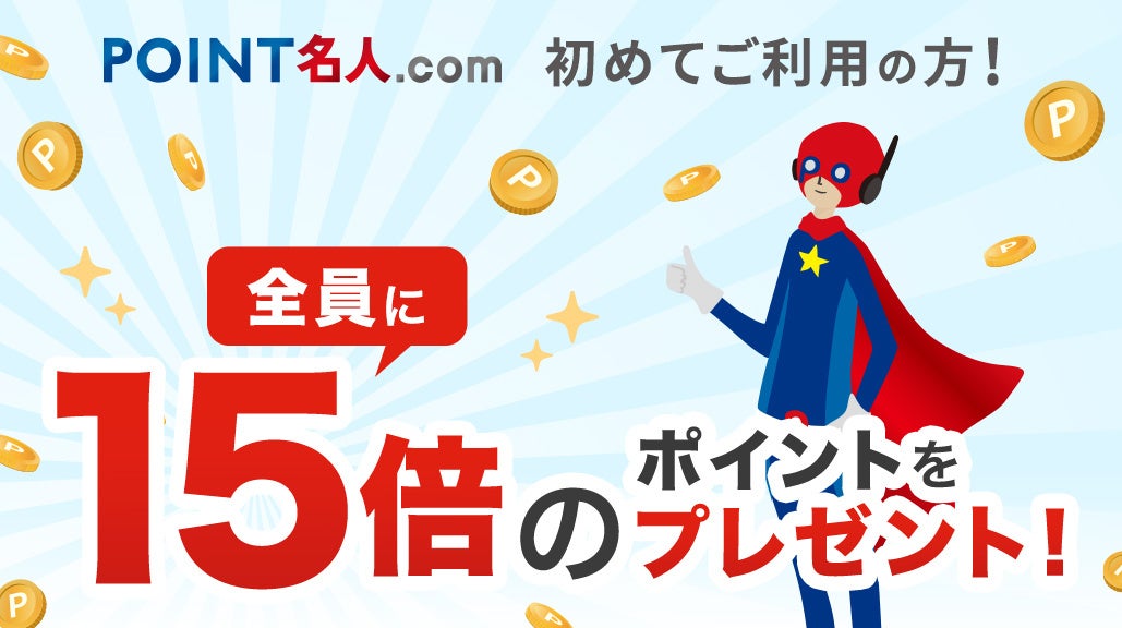 このたびの企画は、対象カード会員のうち、「POINT名人.com」を昨年3月23日のリニューアル以降初めて利用する方が対象。具体的には、同サイト経由でお支払いが初めての会員全員に、「基本ポイント」の15倍となる「キャンペーンポイント(付与上限:100万円利用分まで)」を、「基本ポイント」と「ボーナスポイント」に上乗せしてプレゼントします。これにより会員は、初回利用時に最大40倍のポイント(「基本ポイント」+「ボーナスポイント(基本ポイントの最大24倍)」+「キャンペーンポイント(基本ポイントの15倍)」)を貯められます。