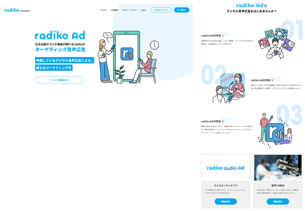 日本全国のラジオ番組が聴けるradikoのターゲティング音声広告「radiko Ad」に関する情報をまとめたビジネスサイト『radiko for business』を開設