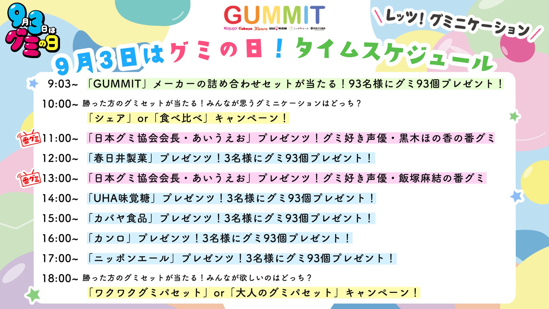 9時間連続で全9回のキャンペーンを開催!各回3名様に93個ずつグミをプレゼント