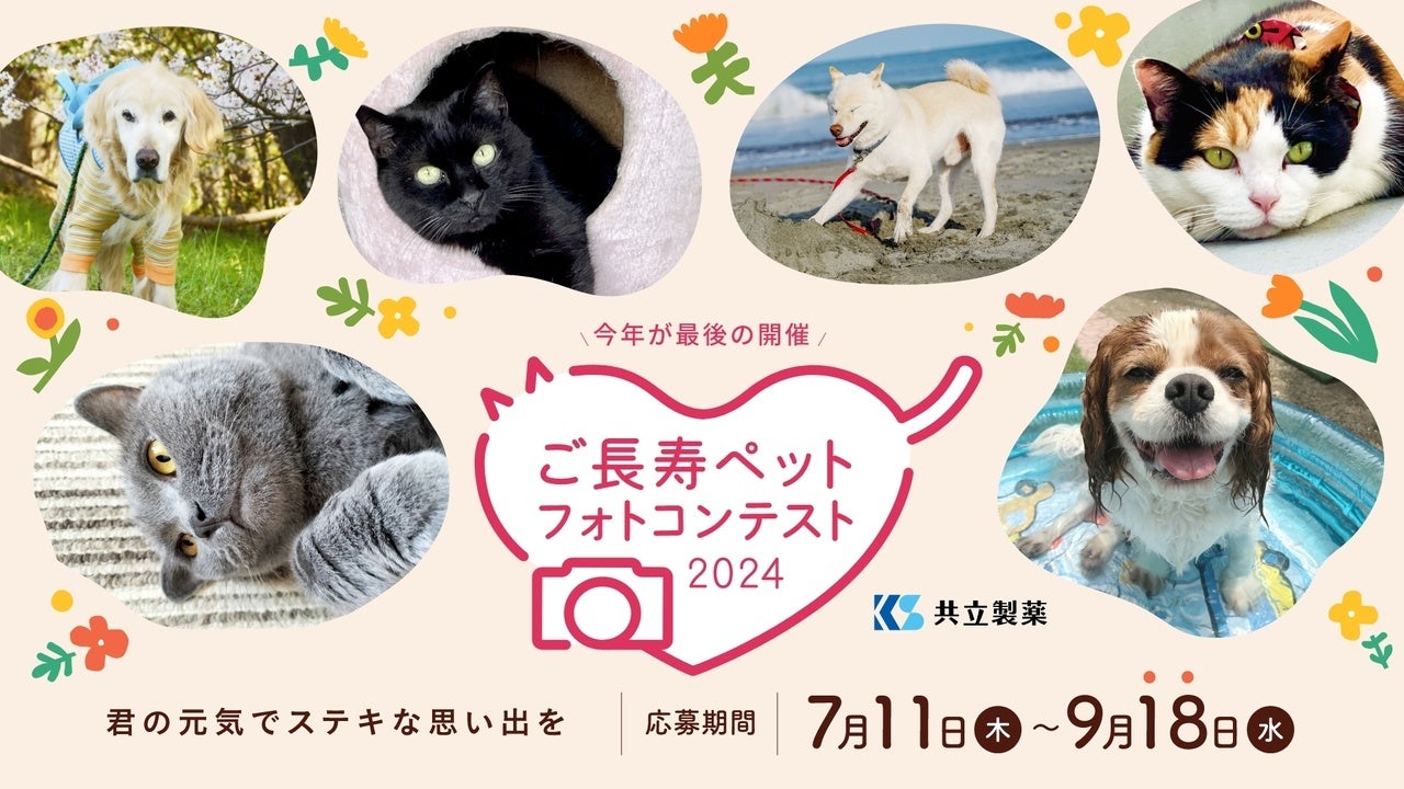 共立製薬株式会社(本社:東京都千代田区、代表取締役社長:髙居 隆章、以下「当社」)は、2024年7月11日より「第17回 ご長寿ペットフォトコンテスト2024」(以下「本コンテスト」)の公募を開始いたしました。